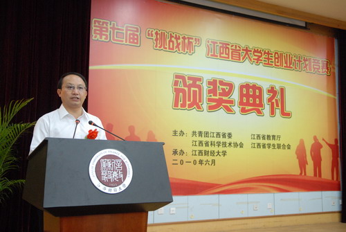 6月4日下午,江西省第七届“挑战杯”大学生创业计划竞赛颁奖典礼在江西财经大学隆重举行。省政府副省长孙刚出席典礼,团省委书记王少玄出席典礼并讲话,省政府办公厅、省教育厅、省科协、江西财经大学等有关领导出席典礼,团省委副书记梅亦主持颁奖典礼。