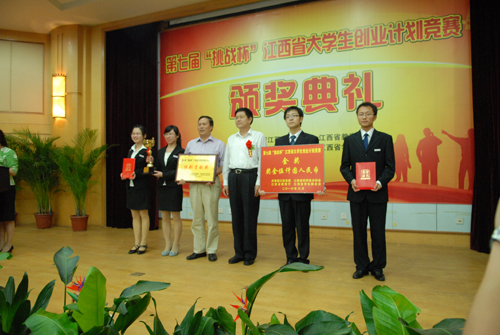 第七届"挑战杯"江西省大学生创业计划竞赛由团省委、教育厅、省科协、省学联主办,江西财经大学承办。竞赛自2009年11月启动校级预赛以来,共有30000余名师生参与了此项赛事。最后有35所高校的98件作品进入省级决赛,经过专家培训、商业计划书评审、网上模拟实战、现场答辩等环节,最终江西财经大学农财生物科技创业团队获得金奖、赣南师范学院橙乡公社创业团队等5个团队获银奖、井冈山大学佳人培训创业团队10个团队获铜奖,这15件获奖作品将于今年9月代表江西参加全国"挑战杯"大学生创业计划竞赛。