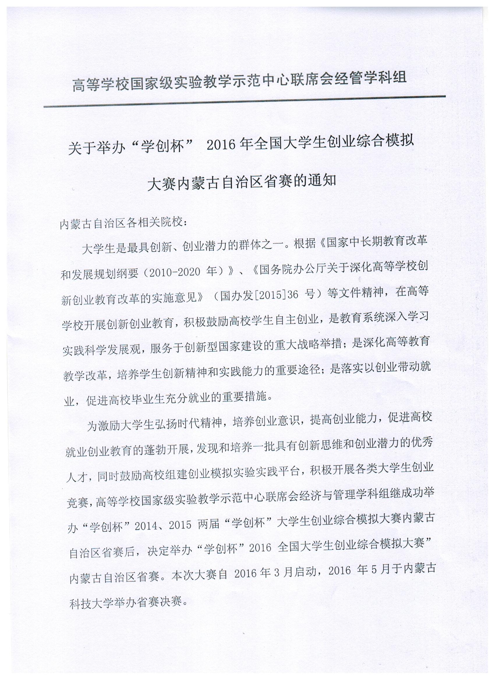 【通知】内蒙古“学创杯”2016全国大学生创业综合模拟大赛省赛通