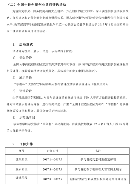 附件1:“学创杯”2017全国大学生创业大赛暨全国十佳创新创业导师评选通知