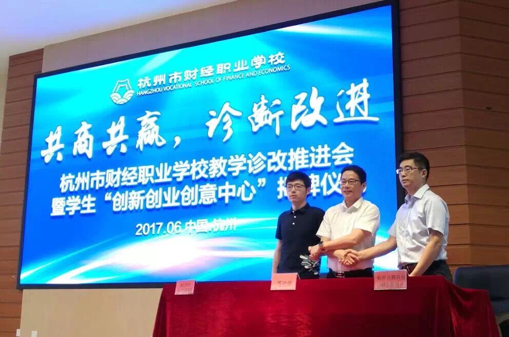 6月27日上午,杭州市财经职业学校教学诊改推进会暨学生“创新创业创意中心”揭牌仪式在学校报告厅顺利举行,杭州贝腾科技有限公司作为校企共建单位出席了会议。