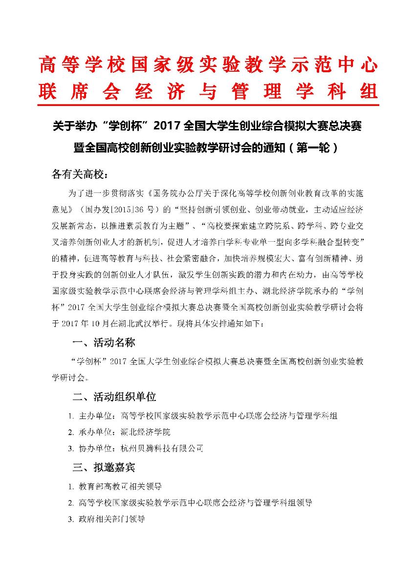 关于举办“学创杯”2017全国大学生创业综合模拟大赛总决赛的通知。