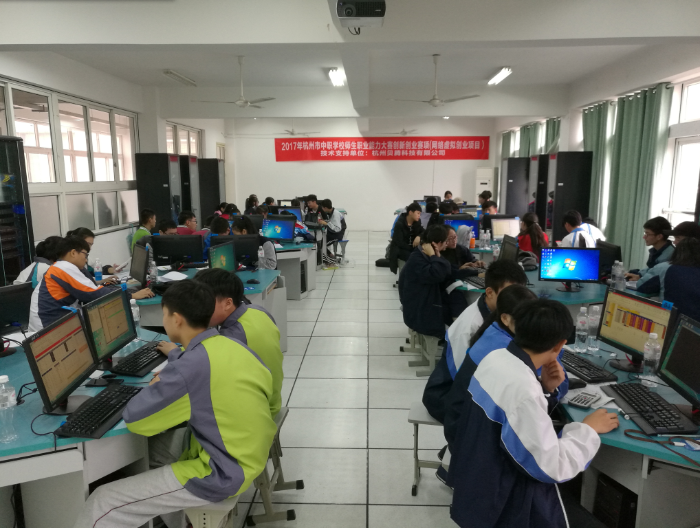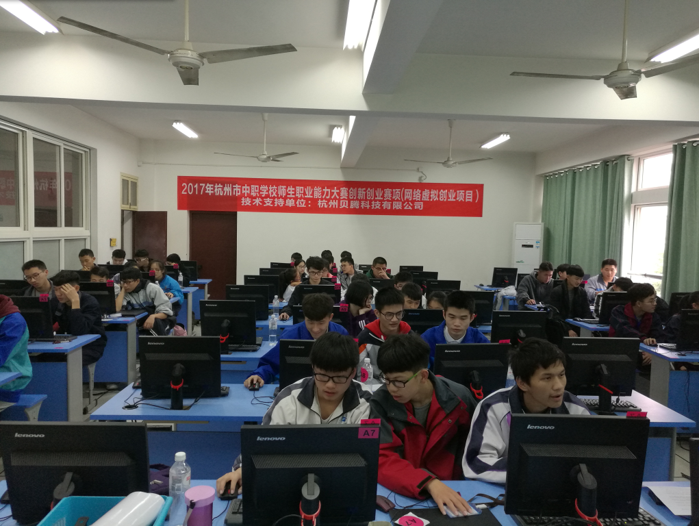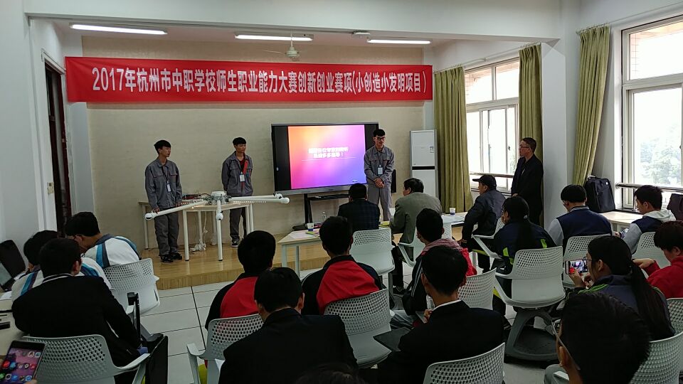 2017年11月14日杭州市中职学校职业能力大赛学生创新创业赛项在杭州市临平职业高级中学成功举办,共分为学生网络虚拟创业、学生小创造小发明、学生创业计划三个项目,本次比赛在赛制上进行了大胆创新,评比过程公正、透明,评委当场亮分,实时播报公布成绩,保持大赛的公开、公平、公正,获得了参赛师生的一致好评。