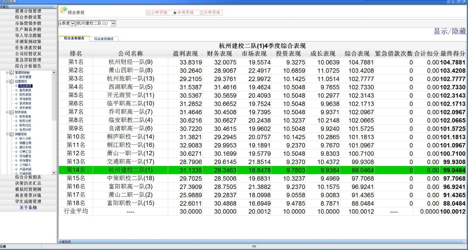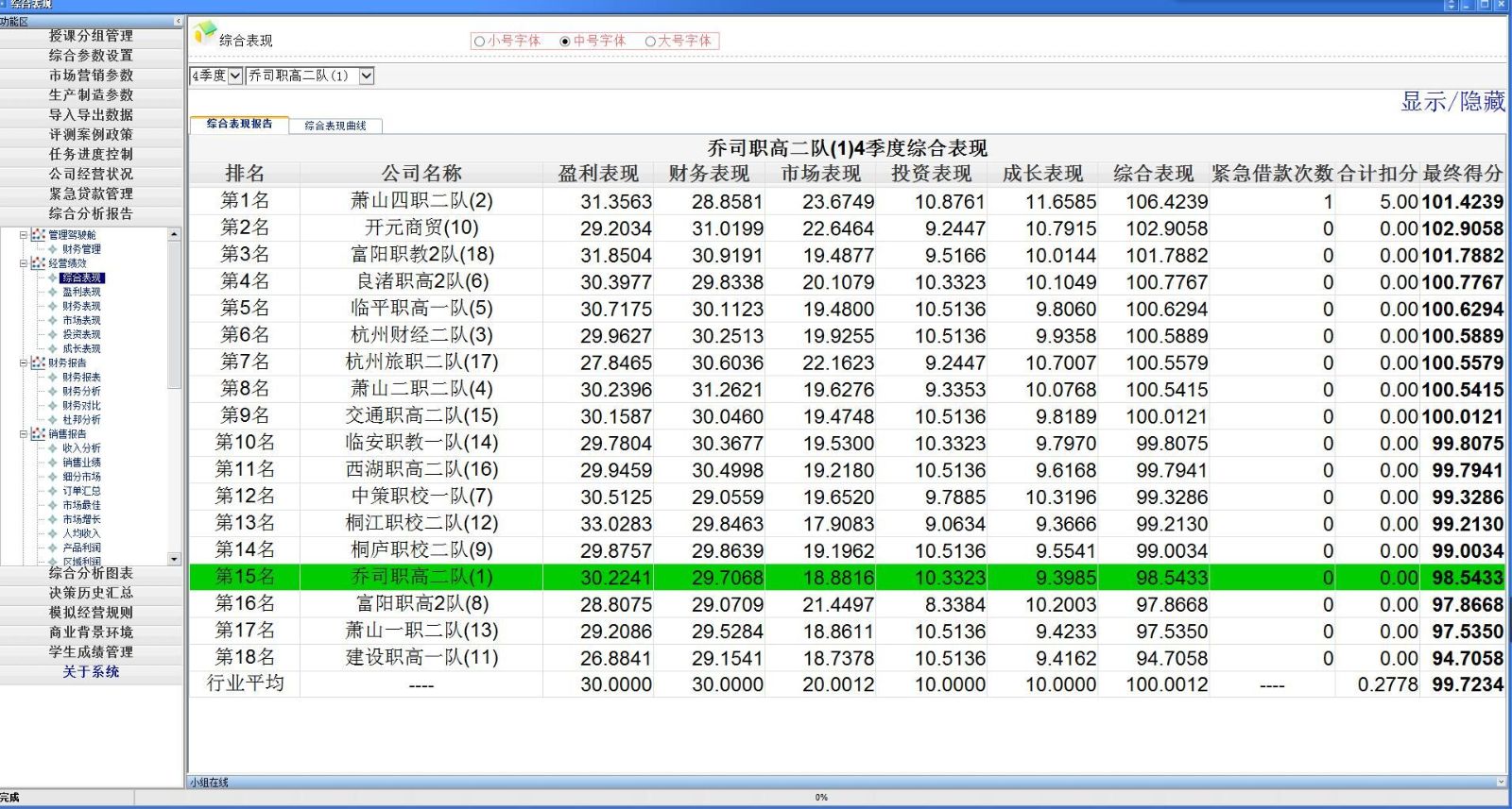 本届网络虚拟创业项目吸引了来自杭州市18所中职学校的36支团队参加,每个参赛团队由3名学生组成。上午8时30分,比赛正式开始,各参赛团队投入到高强度的虚拟创业竞赛中。按照比赛规则完成了竞争激烈的四个季度企业经营软件对抗环节。在比赛中,参赛团队组建公司并通过模拟企业CEO、CFO、CMO等角色对公司进行模拟经营。各家公司的经营战略、经营成果、管理决策通过《创业之星》软件平台处理后,由模拟系统根据各公司的决策操作进行自动评分。电脑系统评分后自动排出各参赛队的最终得分和排名。