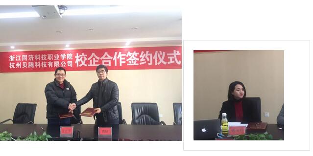 12月19日下午,浙江同济科技职业学院与杭州贝腾科技有限公司校企合作暨揭牌仪式在我司顺利举行。浙江同济科技职业学院副院长吴宏平、招就处处长金永琪、发展与合作处副处长吕兴虎、翔宇创业学院教研室主任徐宜宜、招就处干事陈晓晶莅临公司。杭州贝腾科技有限公司董事长黄林、市场总监肖竟成、华东区销售总监钱玉丹、研发部经理李肖,以及浙江省销售经理郭淑倩参加了本次活动。