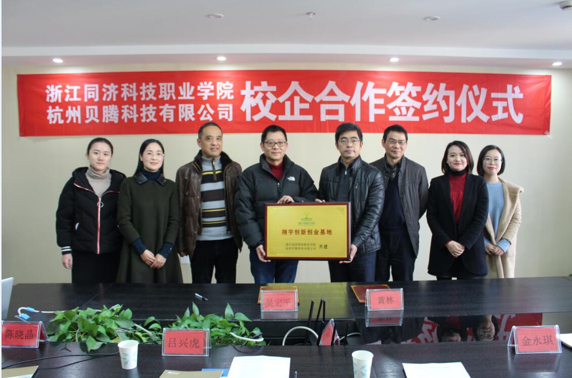 本次会议,双方不仅签订了校企合作协议,还互相授牌。会上浙江同济科技职业学院向贝腾科技授予“校企合作基地”铜牌,贝腾科技授予浙江同济科技职业学院“翔宇创新创业基地”铜牌。