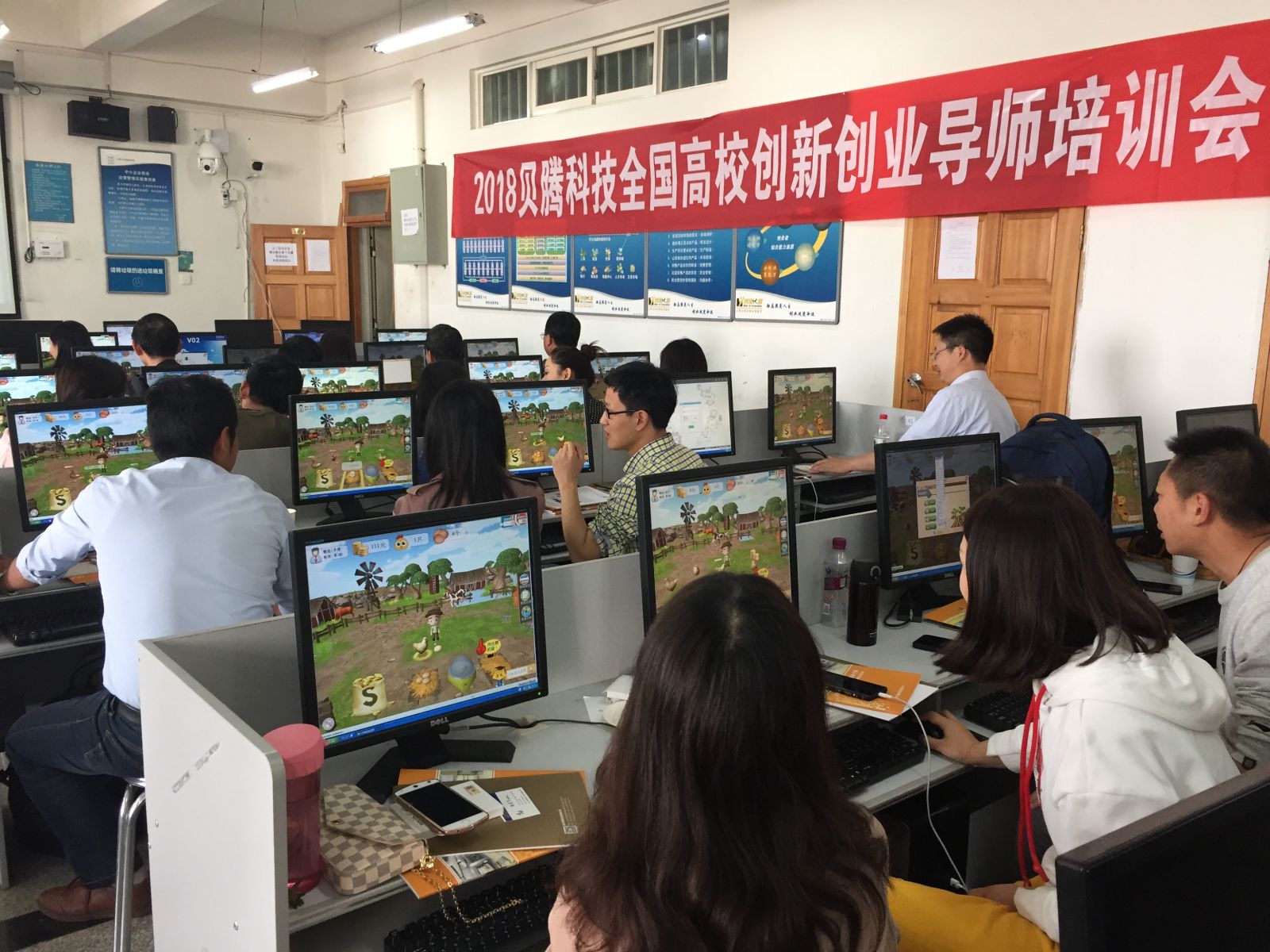 贝腾创业研究院院长姚碧锋作为主讲导师,为两场培训会的老师开展了教育部《创业基础》课程教学示范——《商业模式设计》、《创业团队训练》以及《创业认知》等课程。三项课程完全基于贝腾《创业总动员》平台设计,教学过程结合各种3D模拟创业小游戏,以寓教于乐的形式向老师们展示了创业的含义与本质、商业模式的基本概念与设计方法、创业团队组建的核心思想与关键。游戏过程中涉及创业资源的交换、商业画布应用、团队闯关等内容,与课程主题联系紧密,切入角度精准且便于理解但却并不简单,每个游戏都有独特的小技巧,而每个小技巧又是一种独到的创业方法、创业理念。这也使得老师们在讨论或路演环节有话可讲,有理可论,气氛热烈。