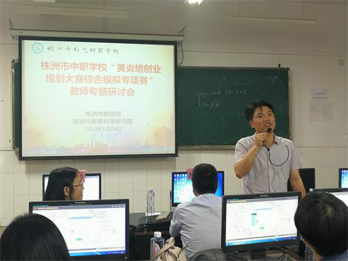 近日,由株洲市教育局主办、株洲市教育科学研究院、株洲市幼儿师范学校共同承办的株洲市中职学校"黄炎培创业规划大赛综合模拟专项赛"教师专题研讨会在株洲幼儿师范学校实训楼7号计算机房举行,来自全市各职业学校的创业指导教师、部分参赛学生和杭州贝腾科技的培训专家共计60余人参加了会议。会议由市教育科学研究院曾姝琦研究员主持。