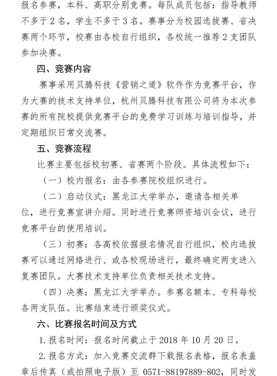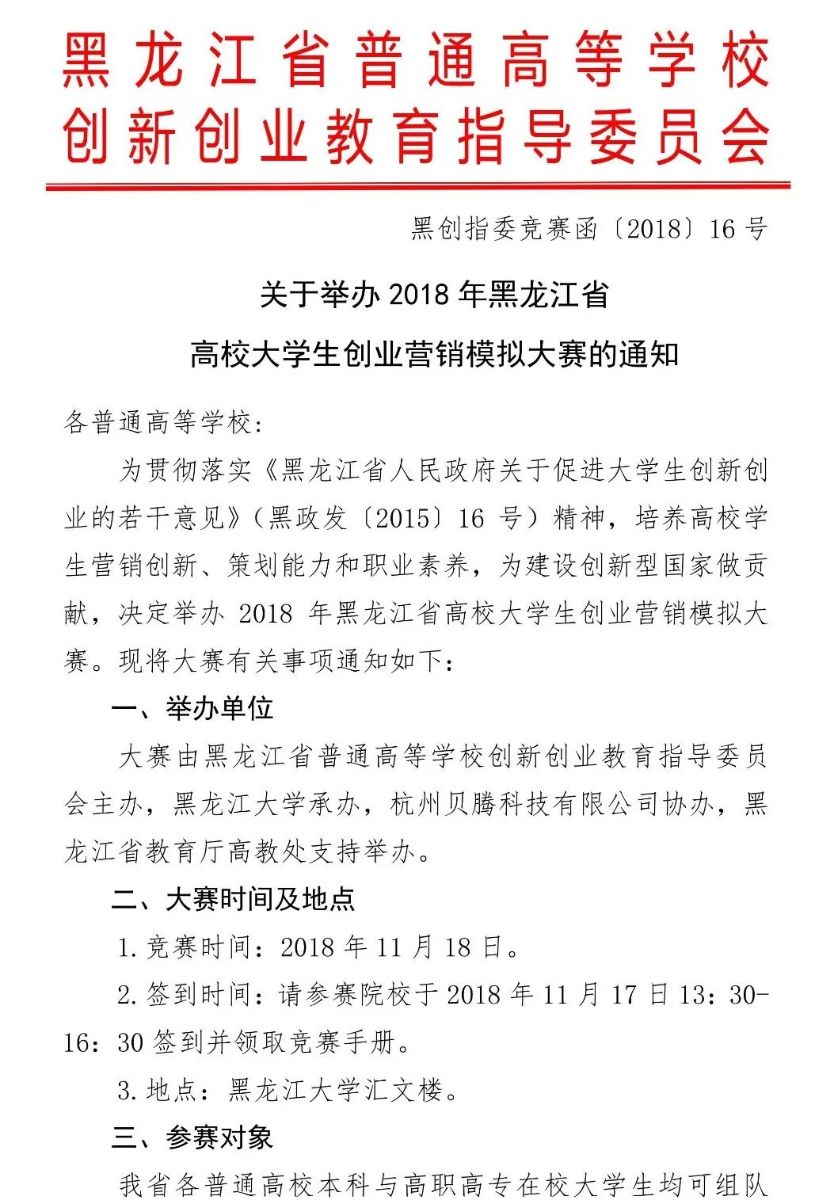 关于举办2018年黑龙江省高校大学生创业营销模拟大赛的通知