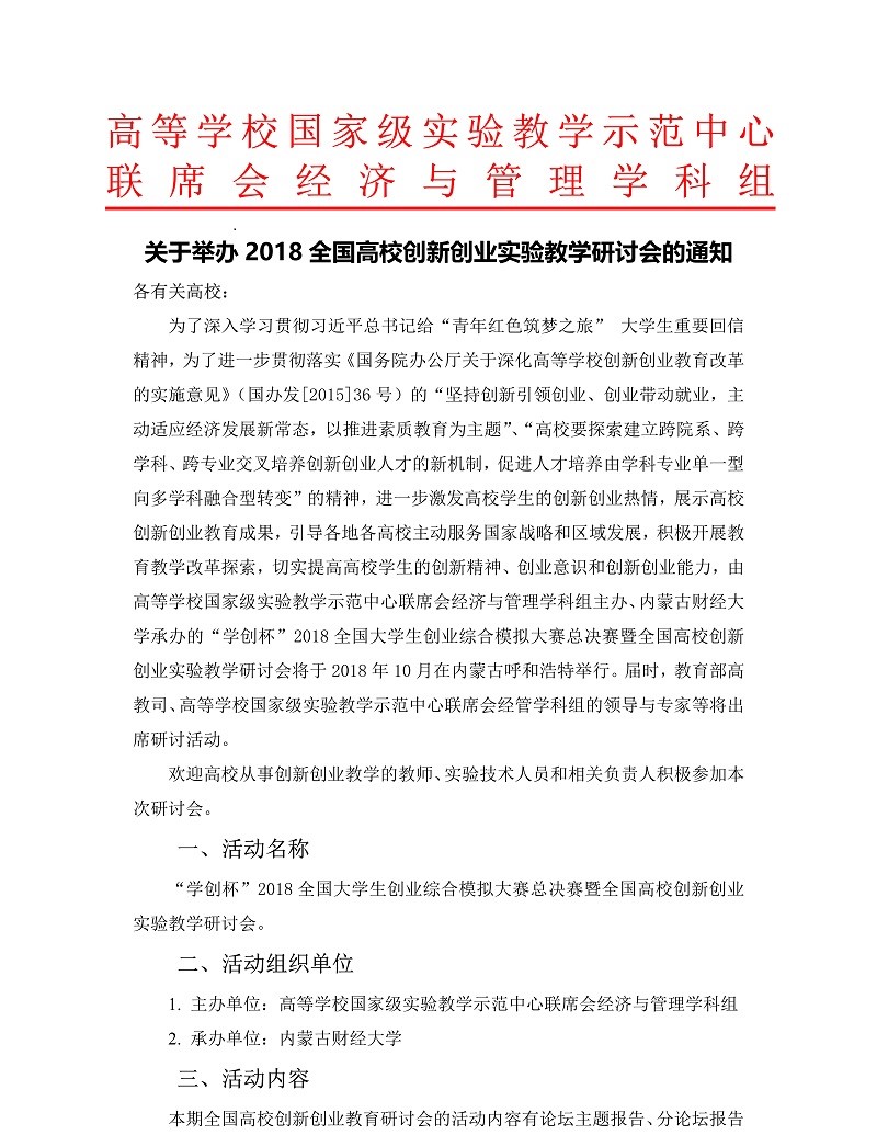 关于举办2018全国高校创新创业实验教学研讨会的通知