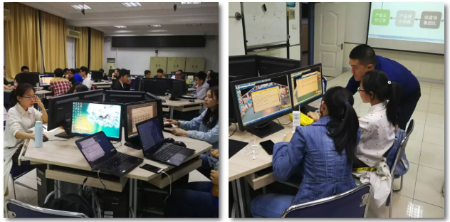 随后学生们开始进入到实战演练。实战演练环节可谓精彩万分,每位学生均沉浸在商场的征伐中。消费群体、市场机会、设计研发、生产采购、生产制造、市场推广、产品销售、招聘培训、财务控制每一个分析、决策都关系着公司的存亡,你的对手就在你的对面,同学们打起万分的精神仔细讨论、认真思考。表面平静的教室其实蕴含着真实商场的激烈竞争。每个季度的转换都是大家检验公司经营策略的一次机会。徐老师也在分析市场基本竞争态势的同时,开展相关初创企业管理的知识讲解。覆盖企业战略、市场营销、财务管理、生产管理等各个环节。