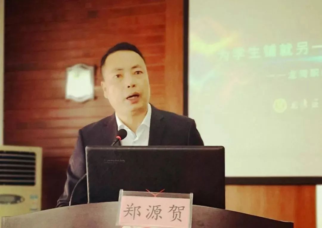 龙湾职教集团校长郑源贺以“为学生铺就另一条高品质成才之路——龙湾职教集团创新创业教育探索”为题展开发言,从学校“三线并进·两翼齐飞”人才培养架构出发,分引入市场机制构建公司化经营管理模式、腾笼换鸟打造多样化创新创业实践平台、引智入校夯实金字塔型指导师队伍、整合优质资源构建合纵连横“高品质”就业人才培养模式、依托多样化实践平台构建“三级覆盖、全员参与”的两创教育课程体系、构建1+2+N两创教育活动体系等六个方面向在场众人阐述了学校在创新创业教育方面的探索实践,博得一致好评。