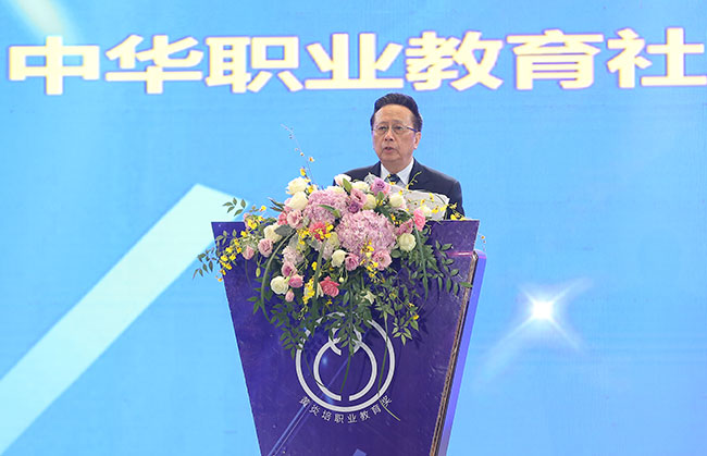 十二届全国人大常委会副委员长、中华职业教育社理事长陈昌智出席颁奖仪式并讲话,他强调,中华职业教育社要将大赛办成深化职业院校创新创业教育改革的重要载体,促进职业院校学生全面发展的重要平台,推动产学研用结合的关键纽带,成为统一战线服务国家大局的又一品牌工程,为建设创新型国家提供源源不断的人才智力支撑。