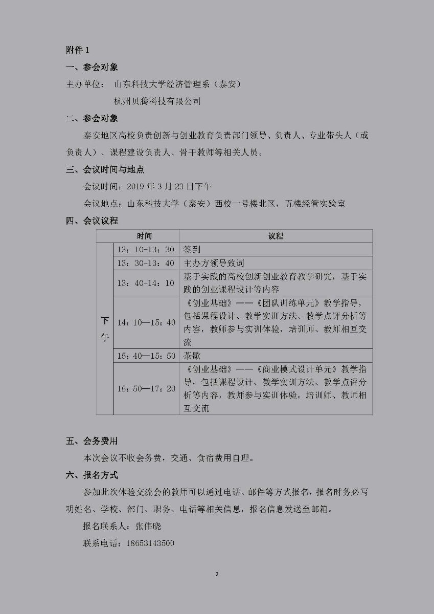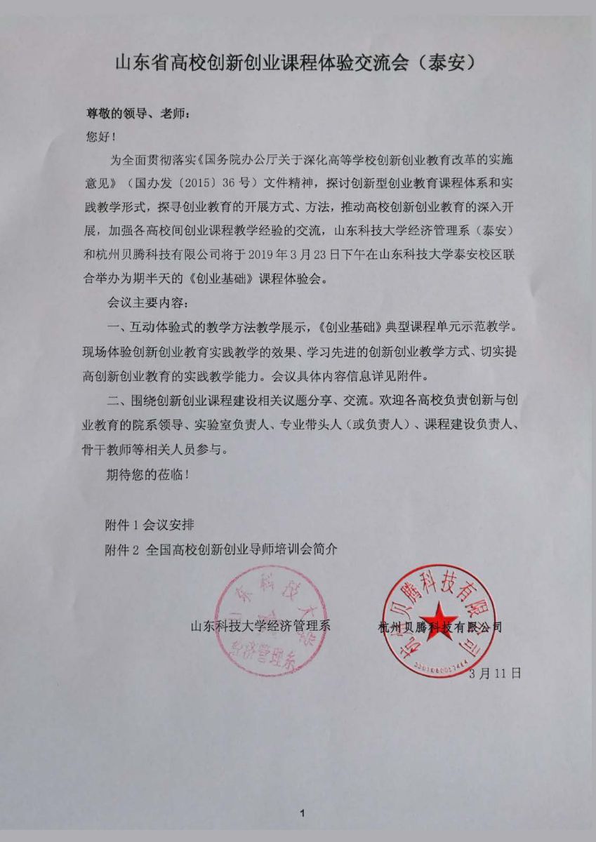 山东省高校创新创业课程体验交流会(泰安)邀请函