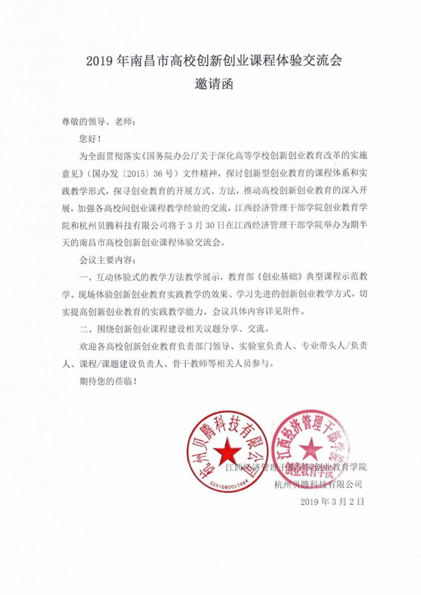 2019年南昌市高校创新创业课程体验交流会邀请函
