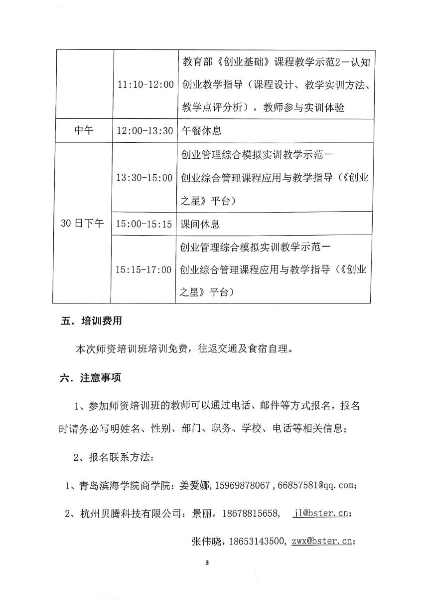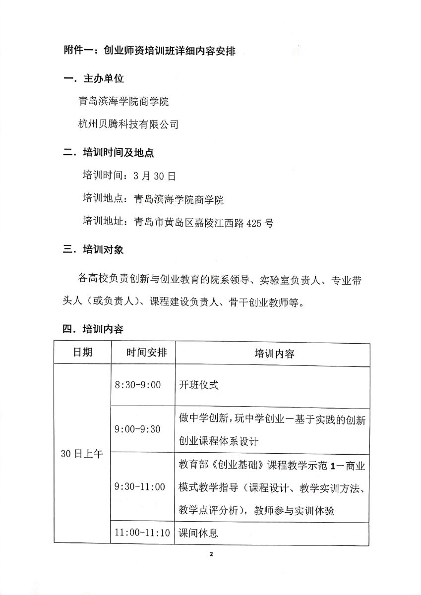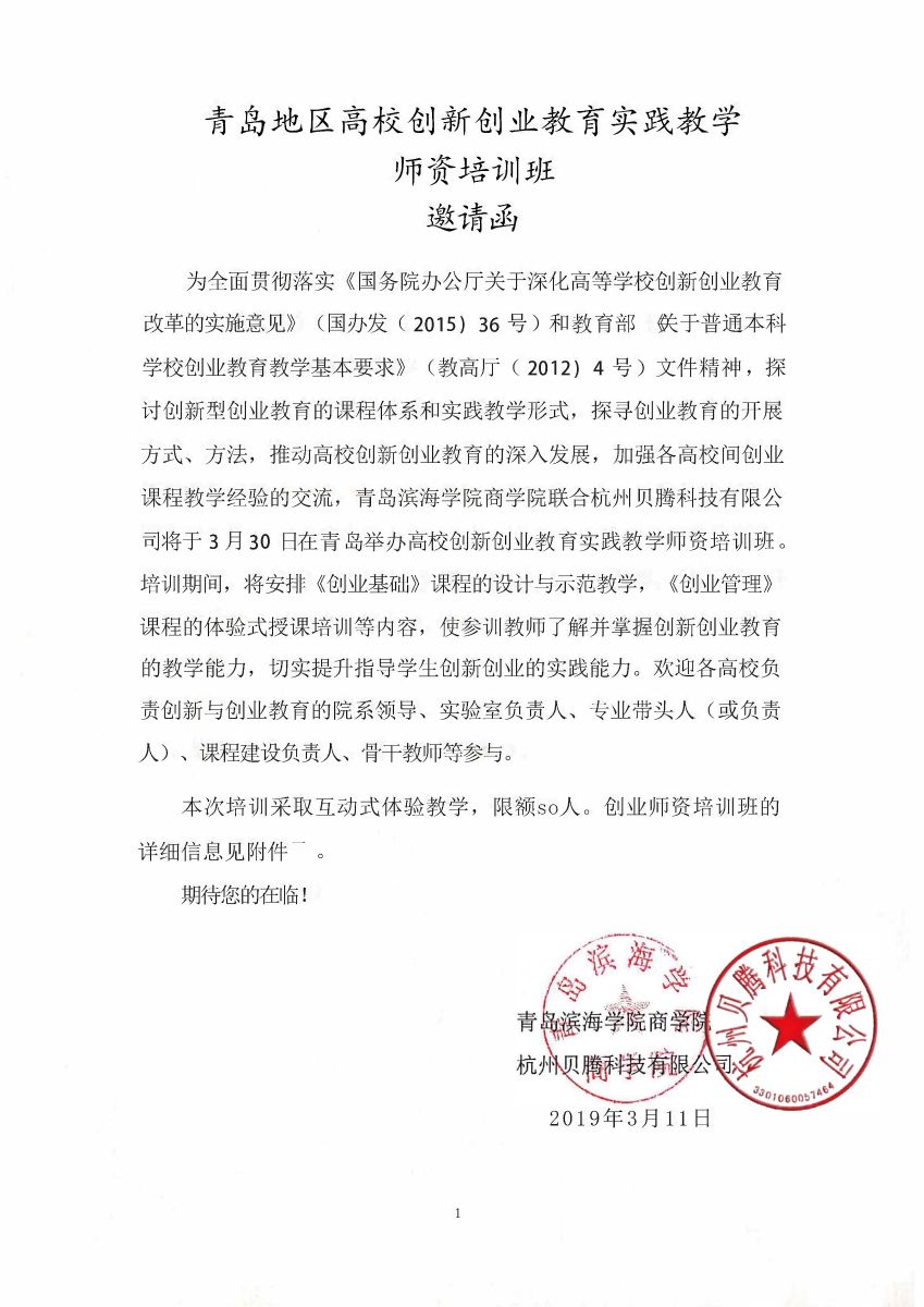青岛地区高校创新创业教育实践教学师资培训班邀请函