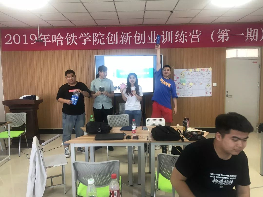 本次创新创业训练营由哈铁学院团委主办,哈铁学院创新创业社团承办,黑龙江达序科技开发有限公司黑龙江大区总监、贝腾创业学院特聘讲师张洪达主讲,训练课程采取任务驱动法、分组讨论法、体验教学法。训练项目有团队组建设计团队名称、团队标志、团队口号、创业要素构想,随机组建团队,利用现有资源进行团队识别要素的设计,讨论创业必备要素,并进行分组展示;开启破冰之旅团队训练执行力锻炼“疯狂动物城”3D模拟游戏;领导力锻炼“领导力大演练”七巧板游戏;商业模式创业项目商业画布设计、路演;团队讨论创业项目,并借贝腾科技“创业总动员”中商业模式模块进行9个构造快的构想,之后以答辩的方式进行展示,感受创业项目核心问题的解决过程;创业模拟智能手环模拟经营借助贝腾科技“创业之星”软件,模拟企业经营4个季度。