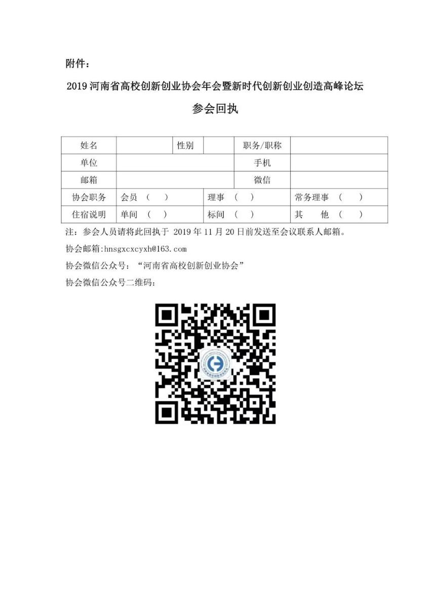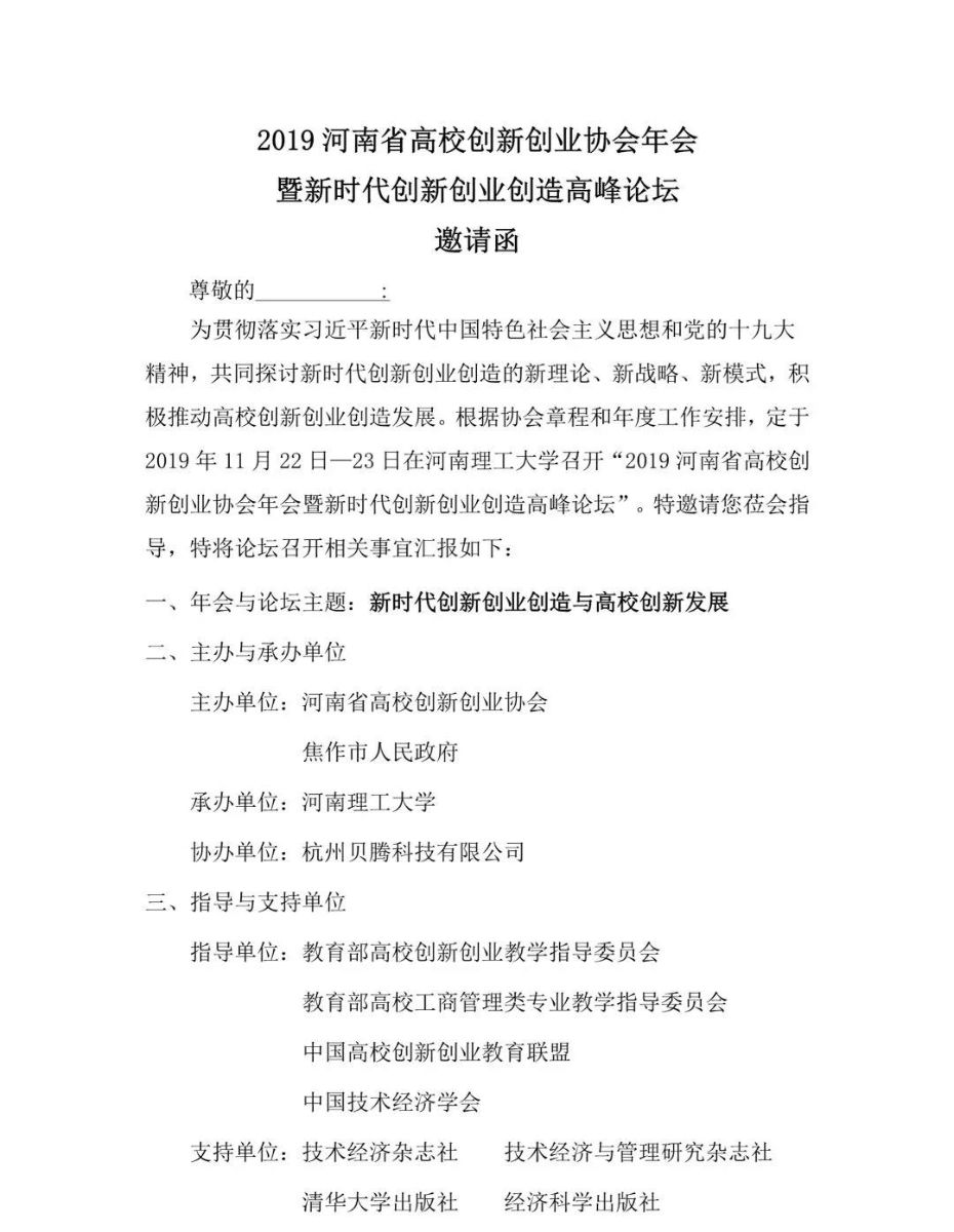 2019河南省高校创新创业协会年会暨新时代创新创业创造高峰论坛邀请函