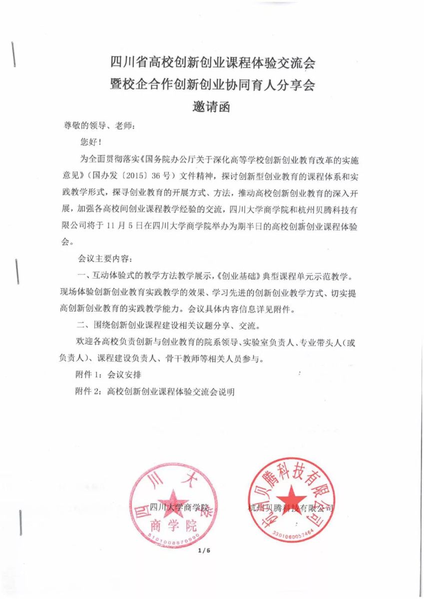 2019年四川省高校创新创业课程体验交流会暨校企合作创新创业协同育人分享会邀请函