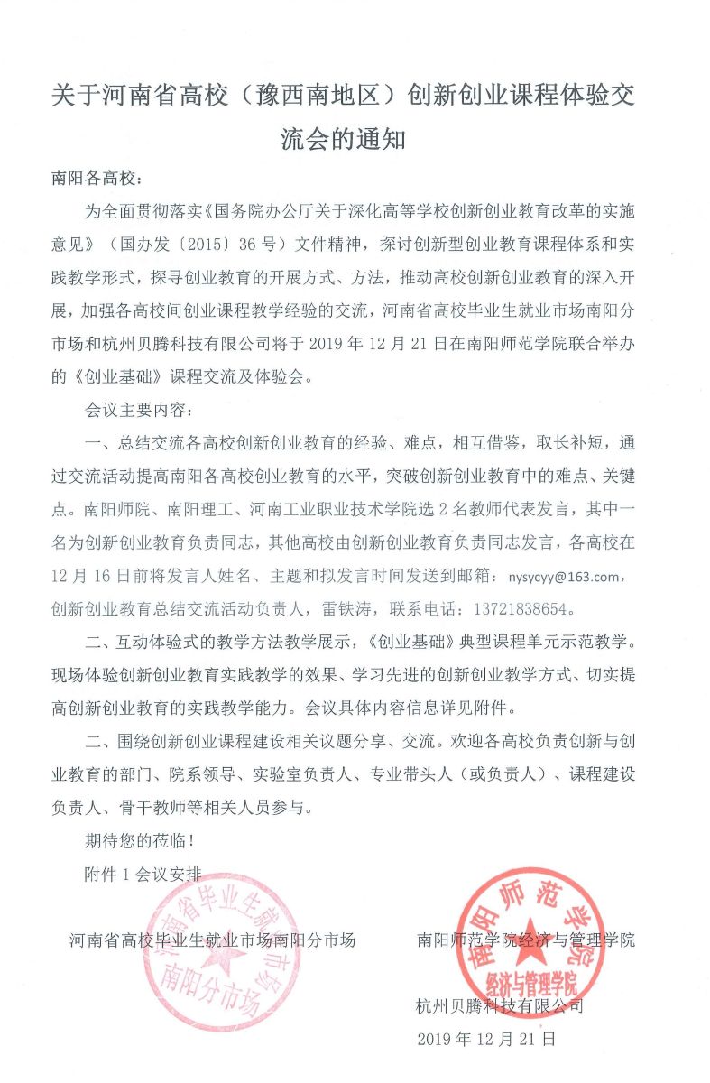 关于河南省高校(豫西南地区)创新创业课程体验交流会的通知