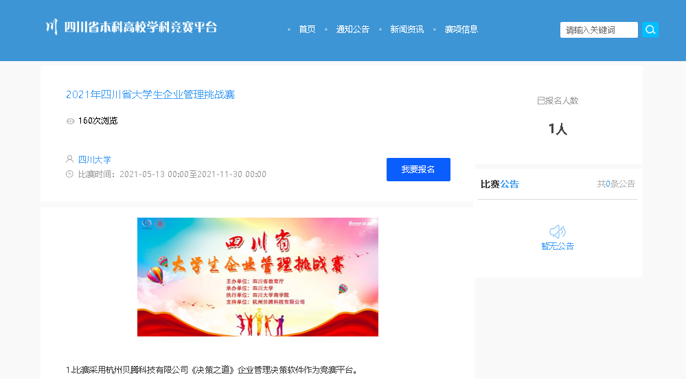 由四川省教育厅主办、四川大学承办、杭州贝腾科技有限公司提供技术支持的“四川省大学生企业管理挑战赛”成功入选“2021年省级本科高校大学生竞赛项目”!