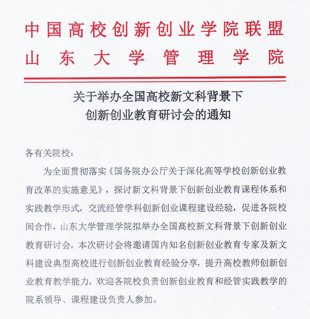 关于举办全国高校新文科背景下创新创业教育研讨会的通知