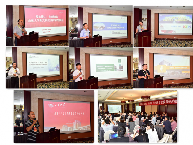 研讨会上山东大学本科生院院长刘传勇,高等学校国家实验教学示范中心经济与管理学科组组长、山东大学(威海)商学院院长戚桂杰,山东大学创新创业学院、国际创新转化学院副院长邢建平,东营职业学院副院长张汝山,四川旅游学院创新创业学院院长吕爽,杭州贝腾科技有限公司市场部总监肖竟成分别作了主题为“凝心聚力 创新建设 山东大学新文科建设探索与实践”、“新文科背景下创新创业教育发展的思考”、“赢创山大教育生态系统与课赛结合+任务驱动实践”、“新文科背景下‘双创’精品在线开放课程建设创新实践”、“坚持产教融合 推进创新创业教育 构建应用型高校人才培养新模式”、“‘教赛创’融合的创新创业教育实践探索”、“2021年贝腾协同育人项目发布解析”的主题报告。