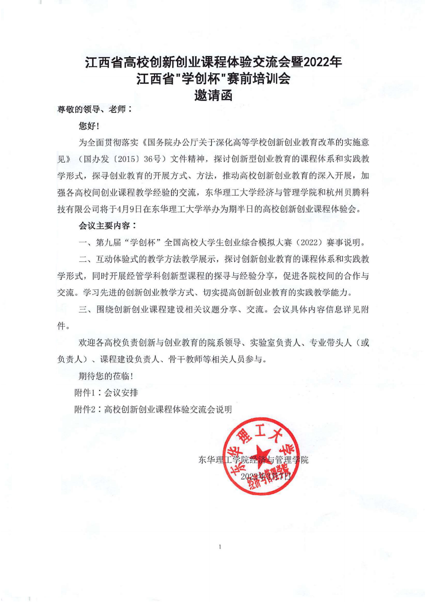 江西省高校创新创业课程体验交流会暨2022年江西省"学创杯"赛前培训会邀请函