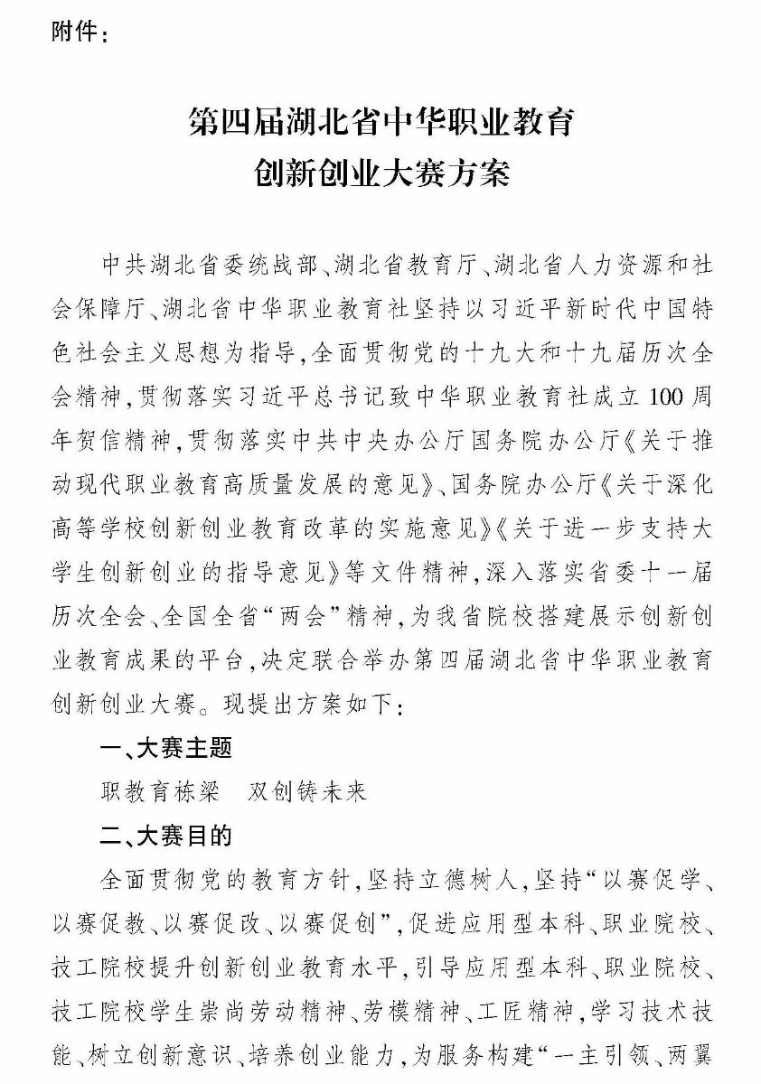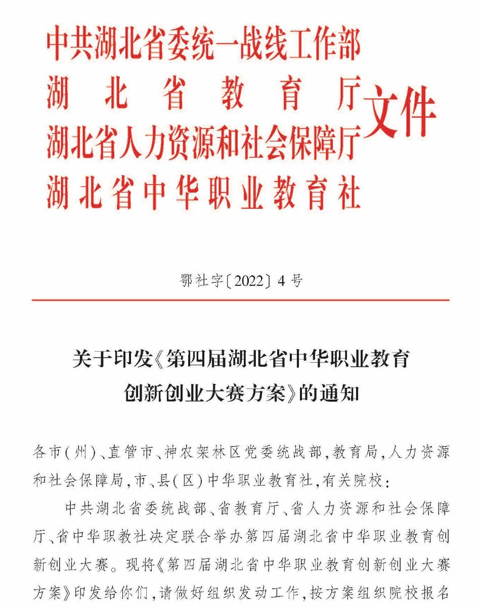关于印发《第四届湖北省中华职业教育创新创业大赛方案》的通知