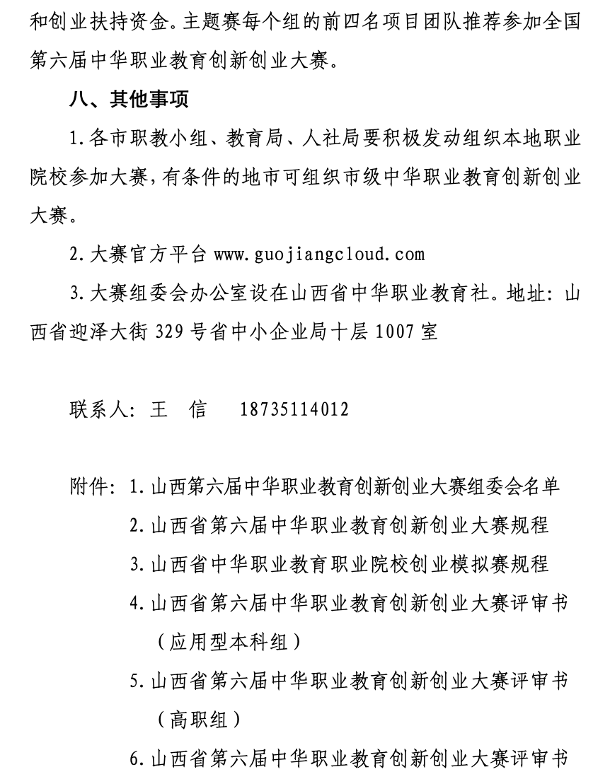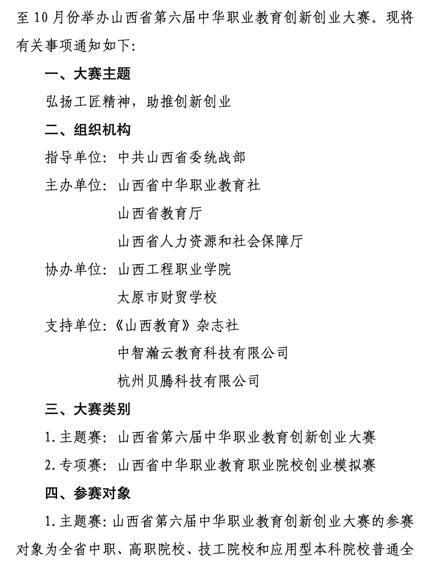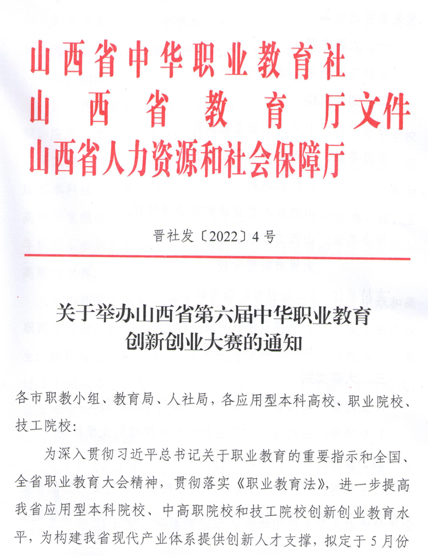 关于举办山西省第六届中华职业教育创新创业大赛的通知