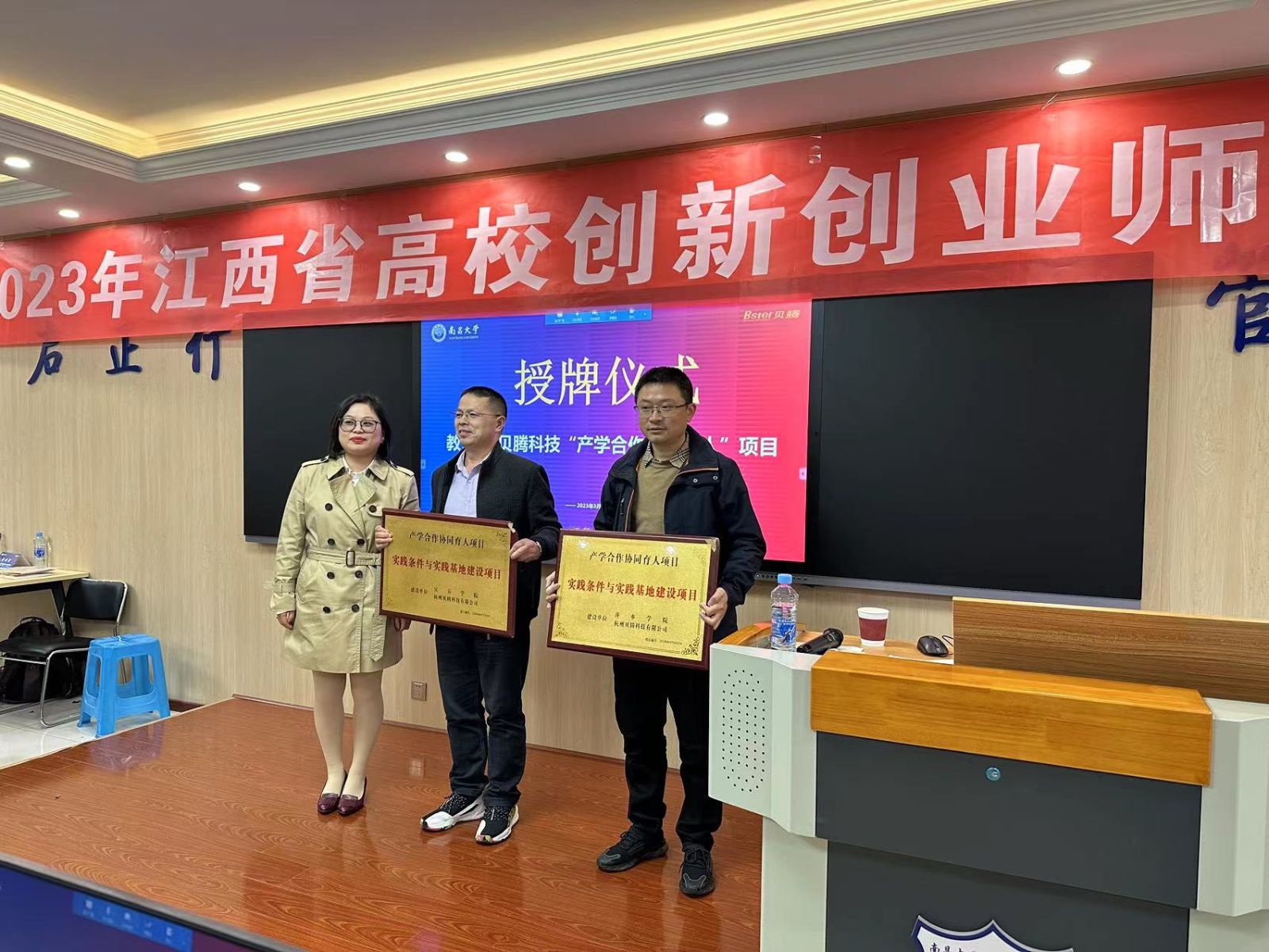 会议期间,贝腾科技还详细介绍了“产学合作协同育人”项目,该项目是国家为了本科人才培养质量,深化产教结合、校企合作,教育部高等教育司组织有关企业支持高校共同开展产学合作协同育人的项目。接着,举行了“产学合作协同育人”的授牌仪式。贝腾科技可以提供各种课程、资料、培训供全国从事创新创业教育的教师参赛使用,同时也希望与各高校开展更多的合作与交流,共同做好创新创业教育。