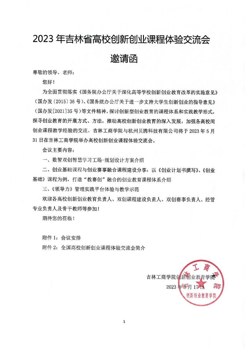 2023年吉林省高校创新创业课程体验交流会邀请函