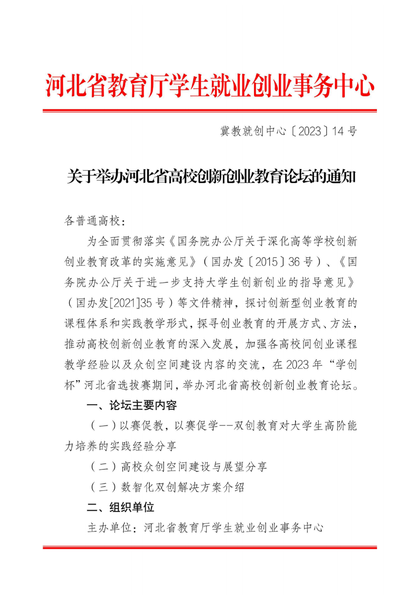 关于举办河北省高校创新创业教育论坛的通知