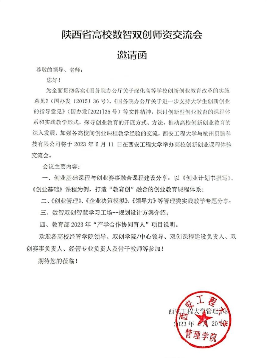 陕西省高校数智双创师资交流会邀请函