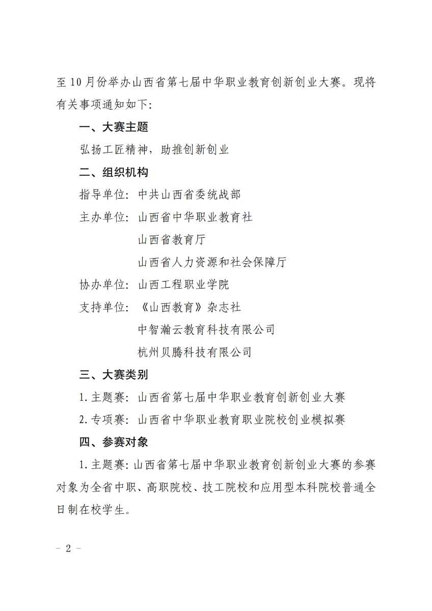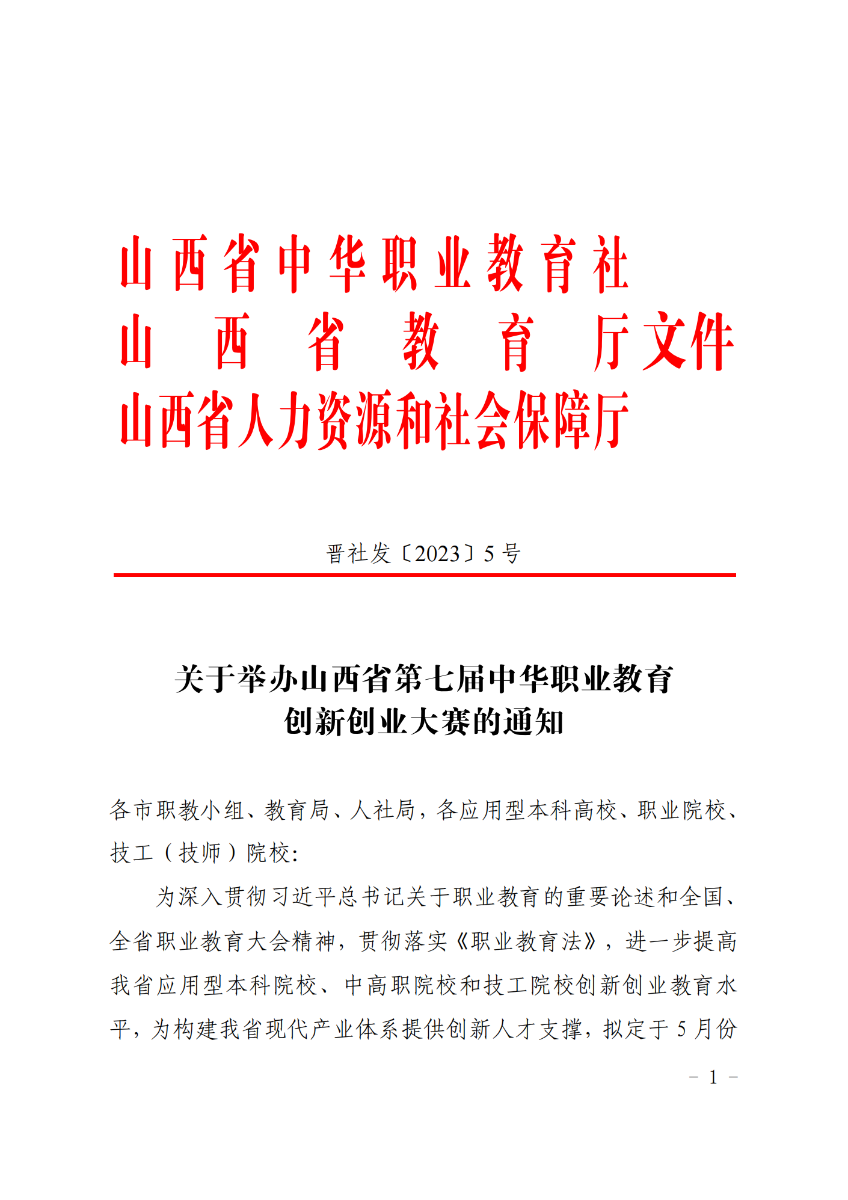 关于举办山西省第七届中华职业教育创新创业大赛的通知