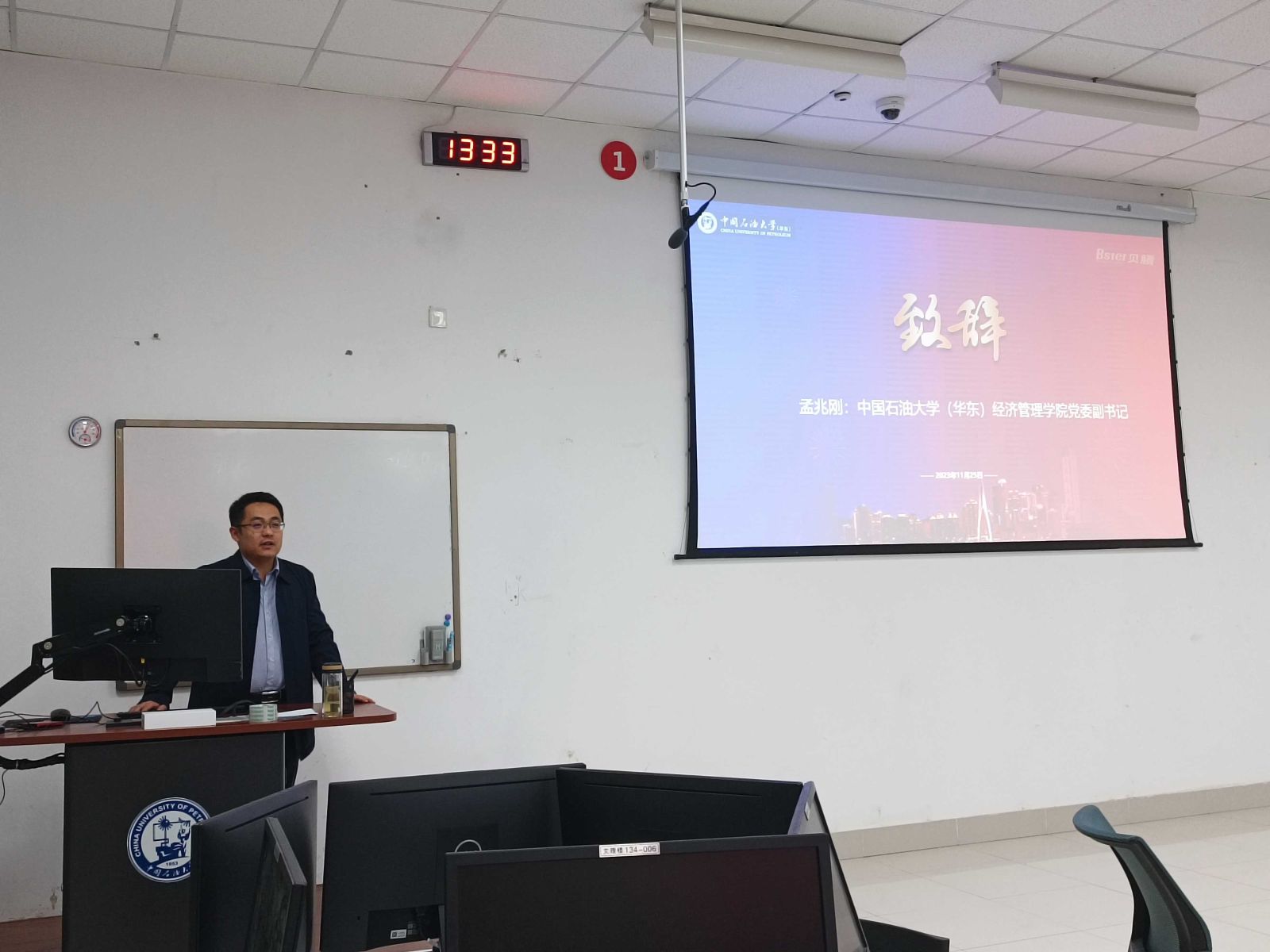 会议开始,中国石油大学(华东)经济管理学院党委副书记孟兆刚代表主办方致辞,并向与会老师们表示热烈的欢迎。他指出,本次会议旨在探讨新形势下创新创业发展和人才培养的新模式,为学生的发展提供新的契机和动力。
