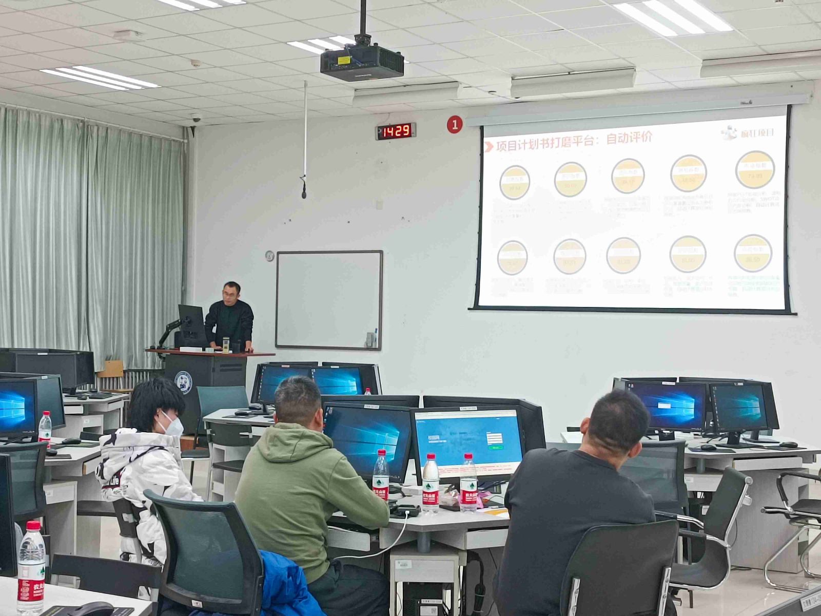 接着,杭州贝腾教育研究院委员刘庆向教师们作“教赛创”融合课程分享,介绍了数智双创智慧学习工场的规划设计方案,并带领参会教师体验双创实践课程的核心模块。