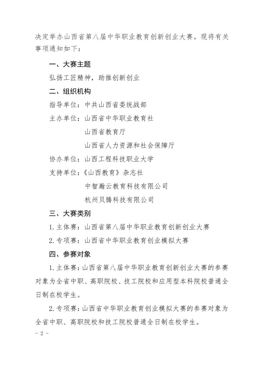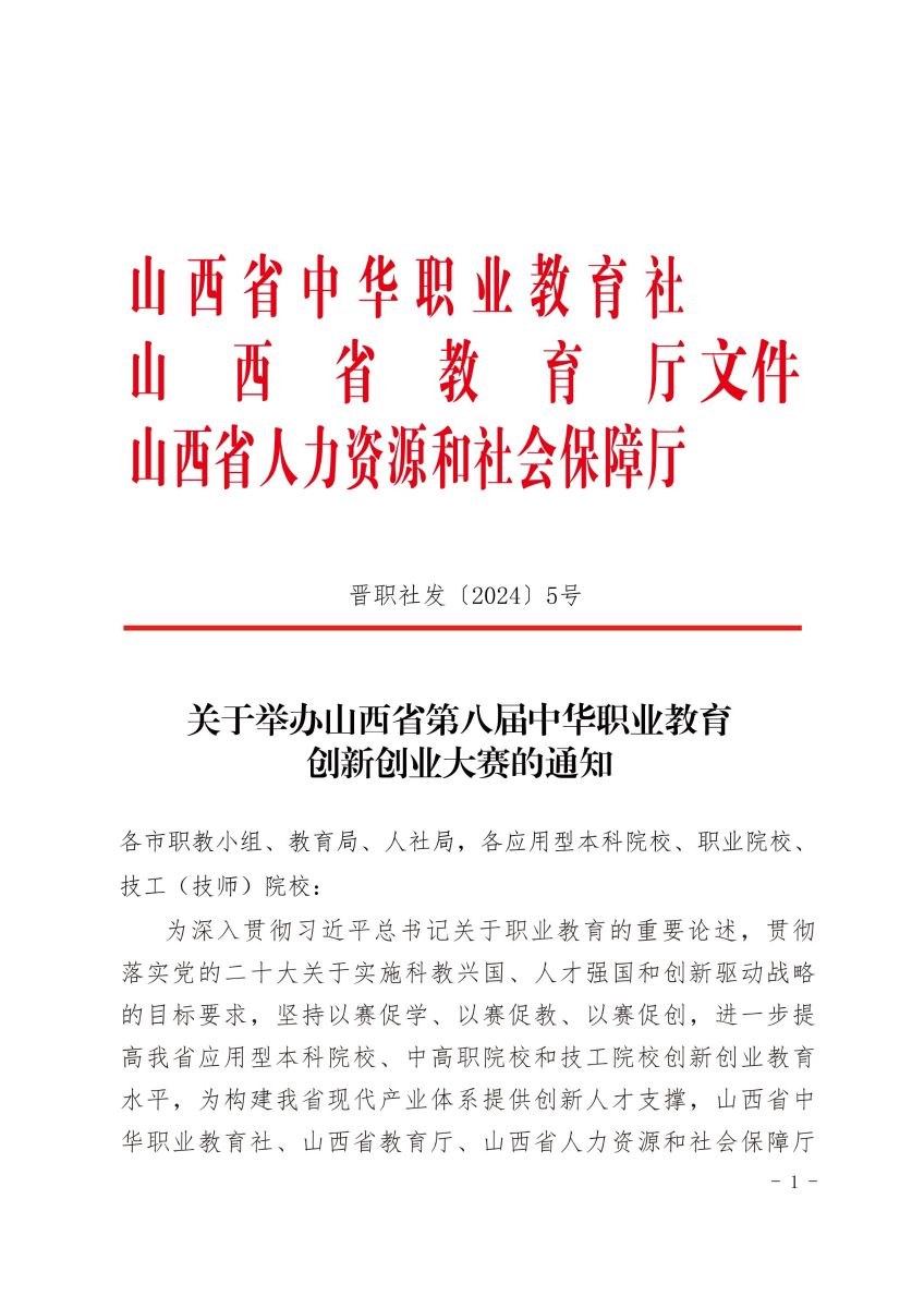 关于举办山西省第八届中华职业教育创新创业大赛的通知