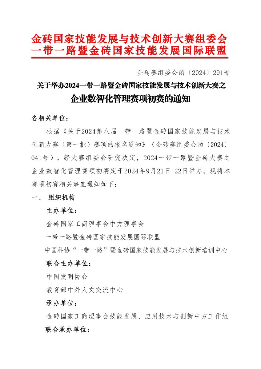 关于举办2024一带一路暨金砖国家技能发展与技术创新大赛之企业数智化管理赛项初赛的通知