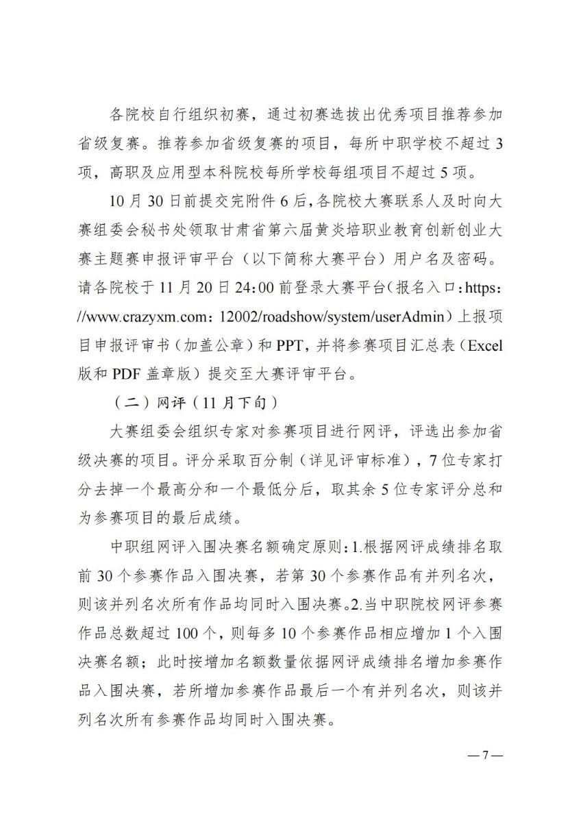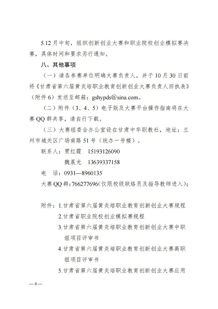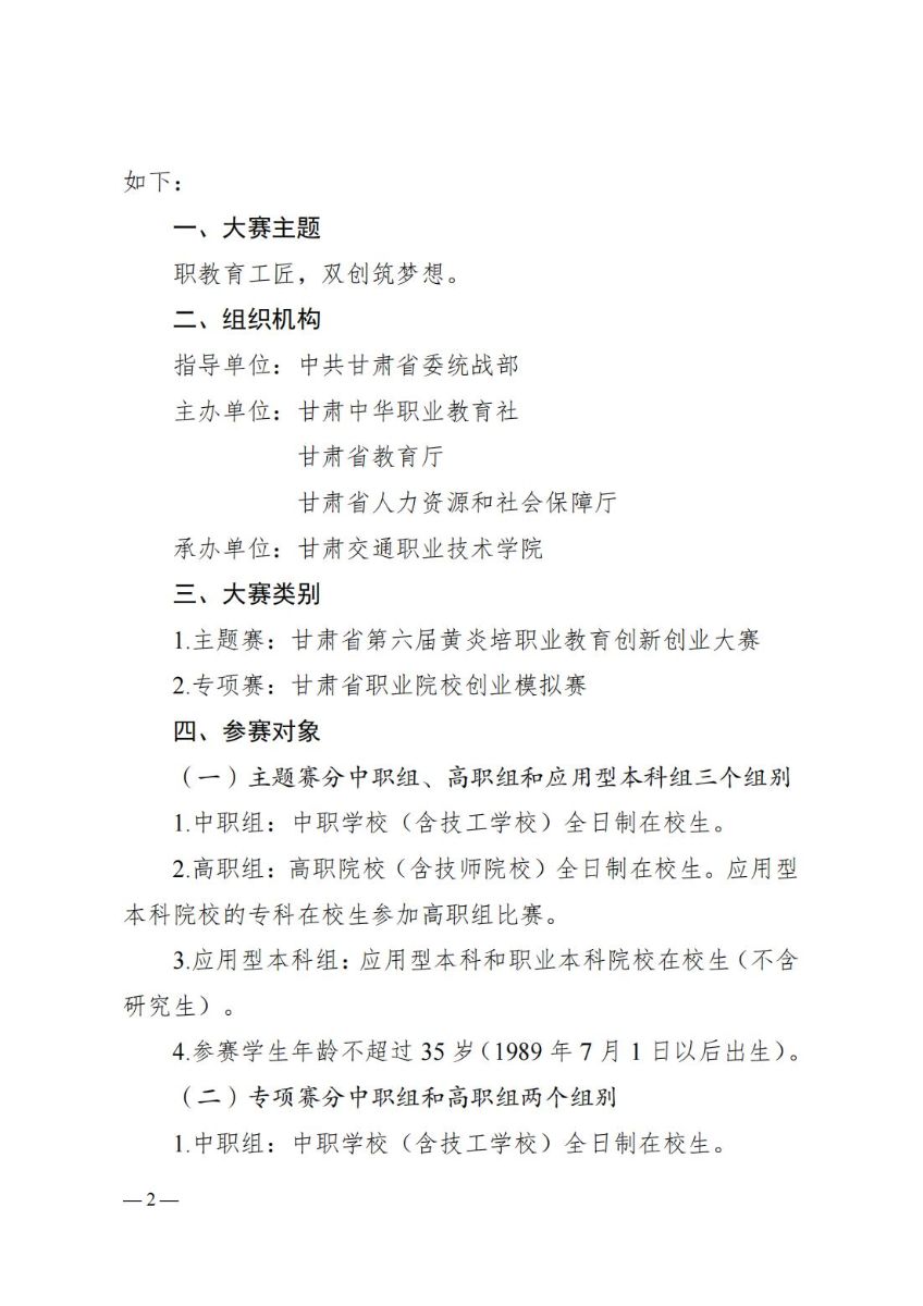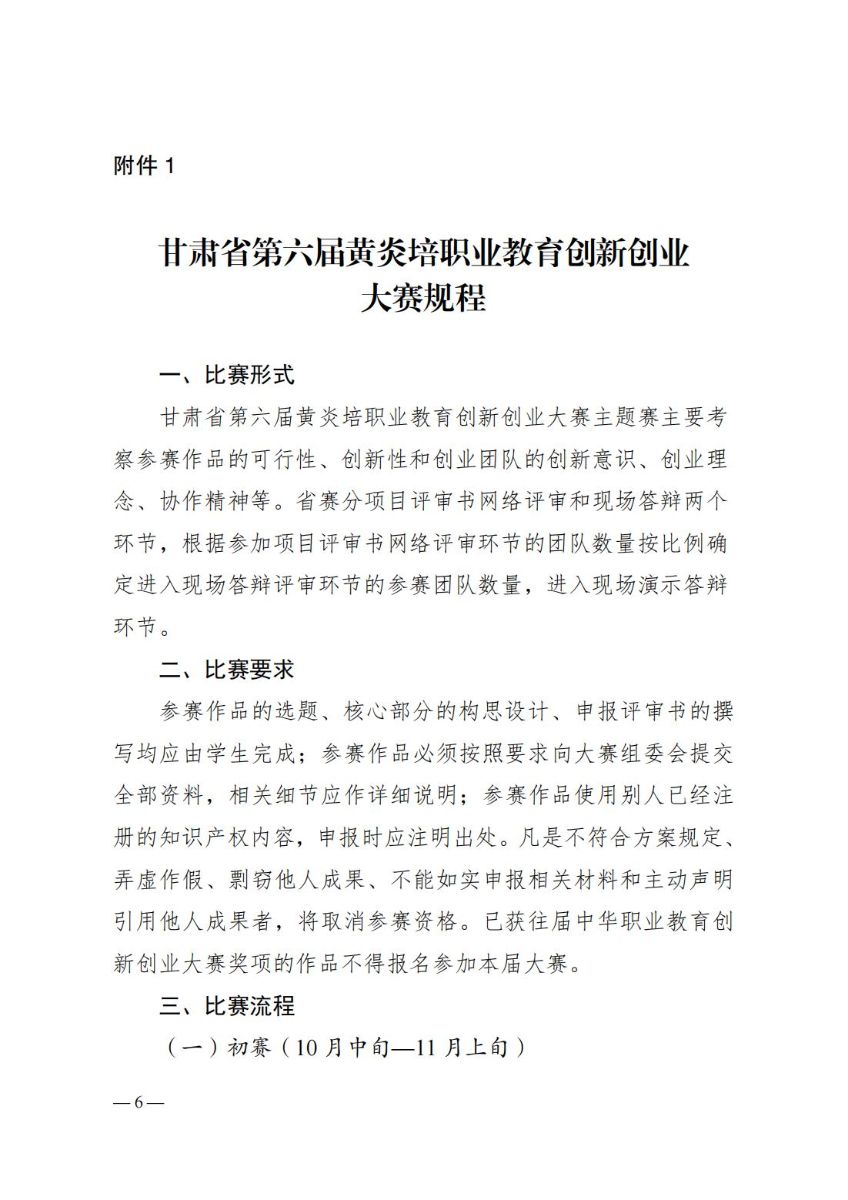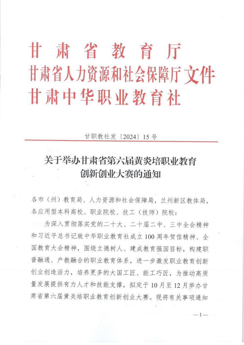 关于举办甘肃省第六届黄炎培职业教育创新创业大赛的通知