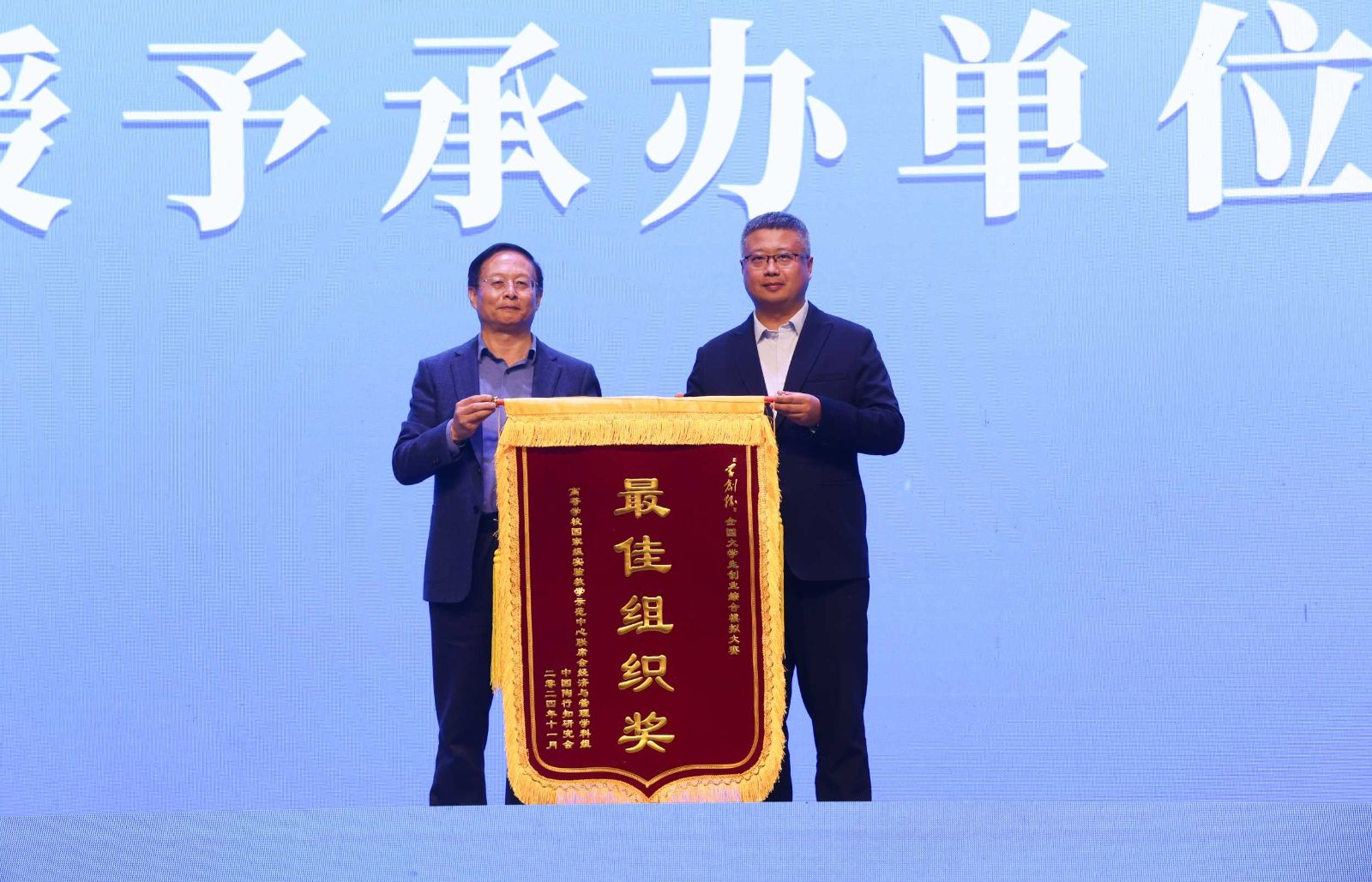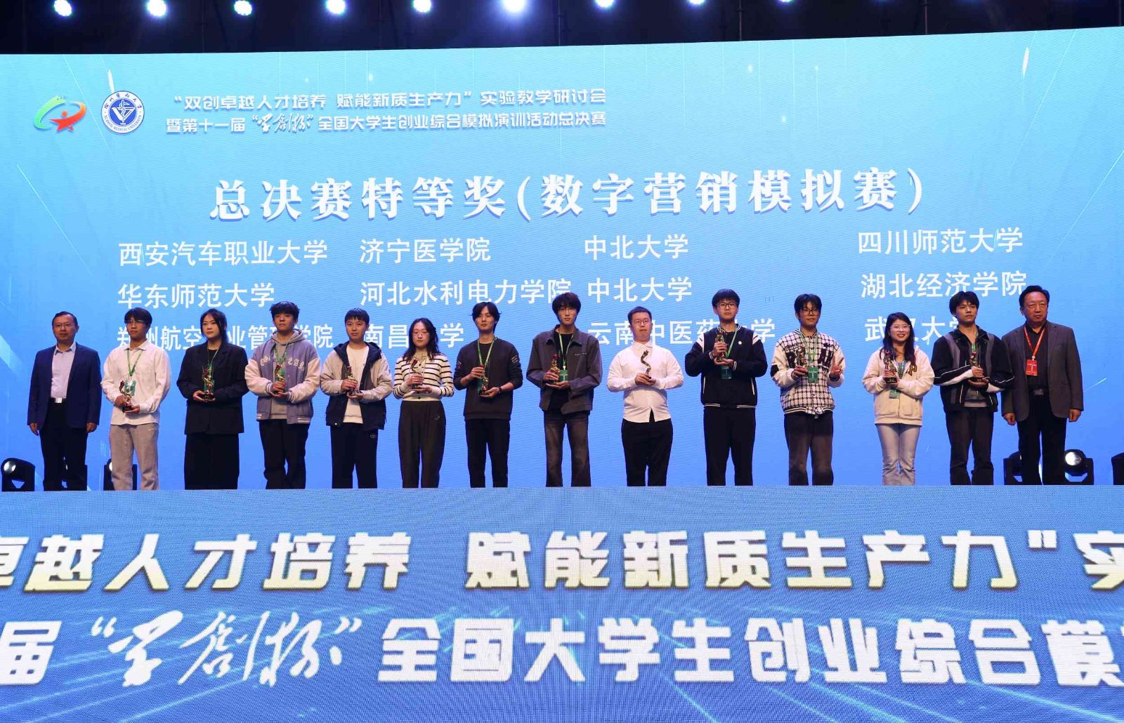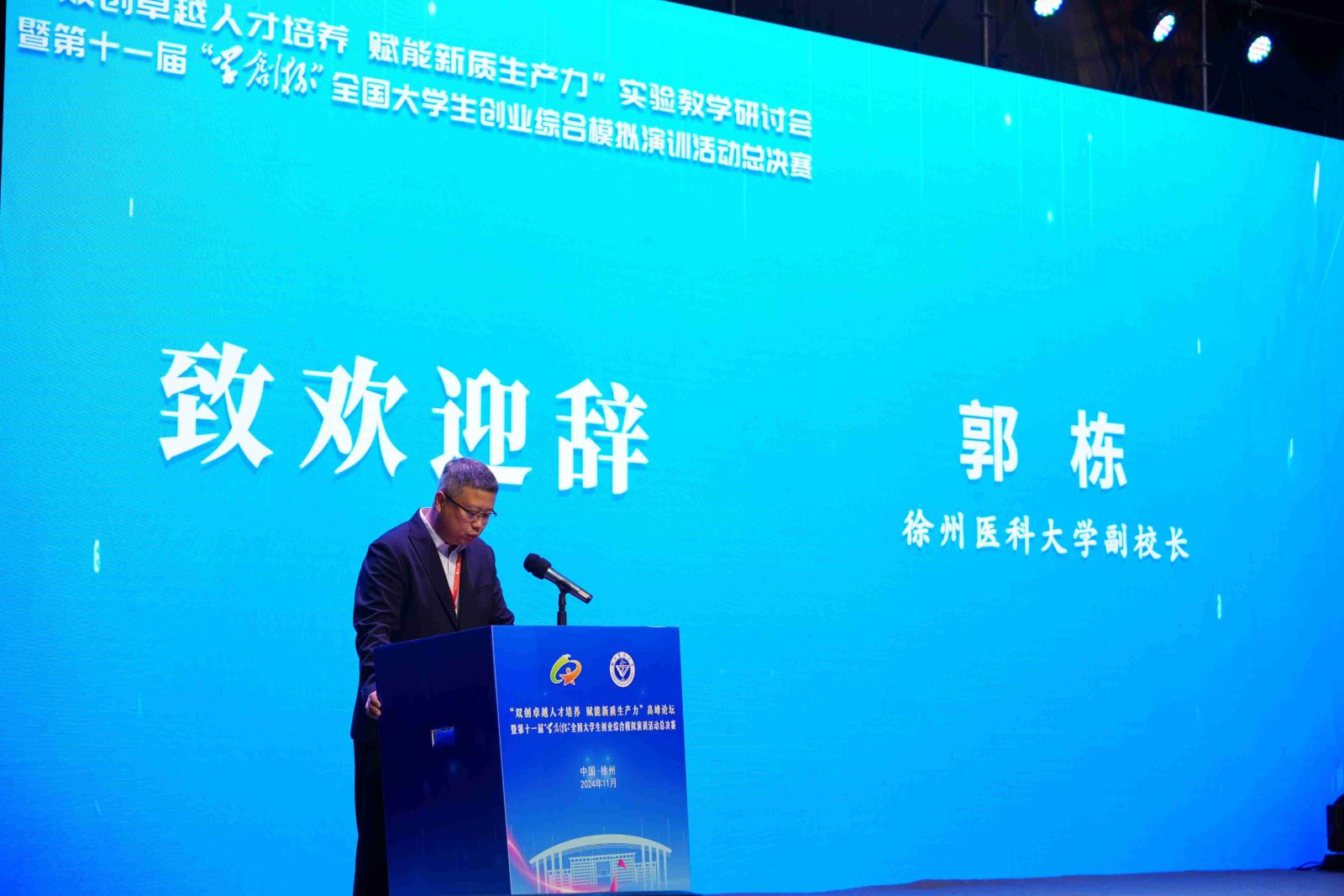 11月2日-3日,由高等学校国家级实验教学示范中心联席会经济与管理学科组、中国陶行知研究会主办,徐州医科大学承办,杭州贝腾科技有限公司支持的第十一届“学创杯”全国大学生创业综合模拟演训活动总决赛(高教组)暨“双创卓越人才培养,赋能新质生产力”实验教学研讨会在徐州医科大学成功举办。