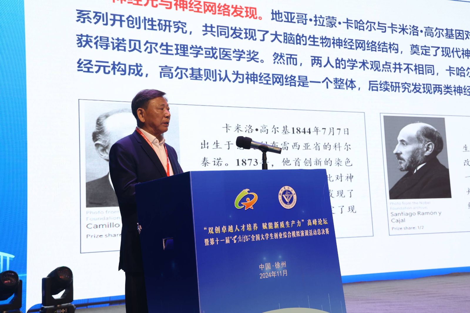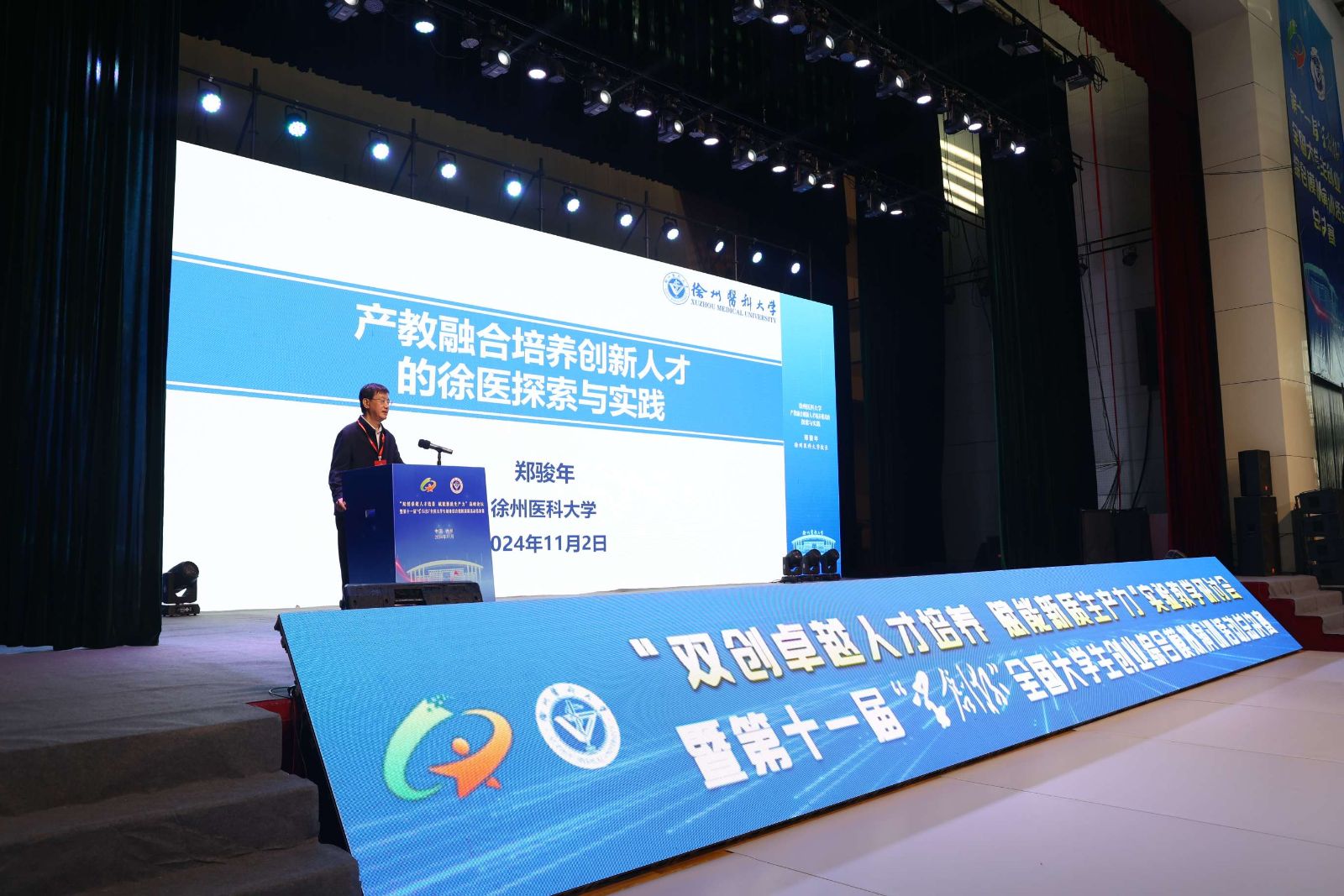 徐州医科大学校长郑骏年以“徐州医科大学产教融合创新人才培养模式的探索与实践”为题,分享了徐州医科大学在产教融合模式下的发展历程和取得的成效。