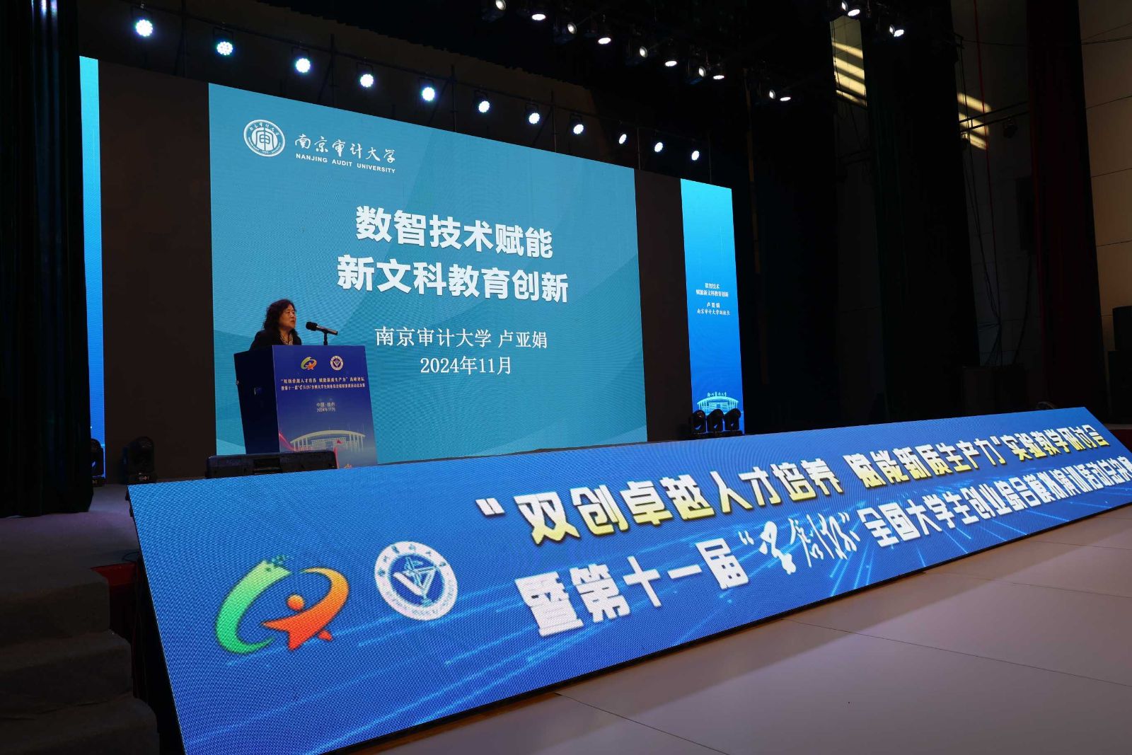 南京审计大学副校长卢亚娟以“数智技术赋能新文科教育创新”为题,探讨了数字技术与商科融合的发展趋势以及高校在育人方式上的创新。卢副校长指出,随着数字技术的快速发展,新文科教育正面临着前所未有的机遇和挑战,高校应积极探索数智技术在商科教育中的应用,培养具有跨学科背景的复合型人才。