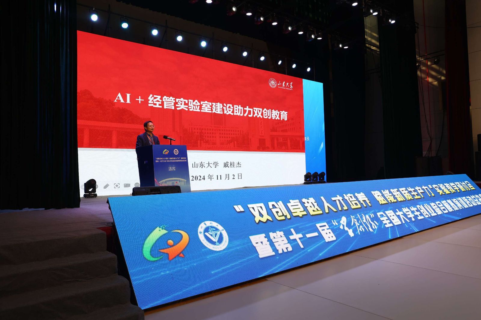 国家级实验教学示范中心联席会经济与管理学科组组长戚桂杰以“AI+经管实验室建设助力双创教育”为题,探讨了创新创业教育面临的形势以及人工智能对人才培养带来的挑战。戚教授还提到了习近平总书记对中国国际大学生创新大赛参赛学生代表团的回信,强调了创新是人类进步的源泉,青年是创新的重要生力军。