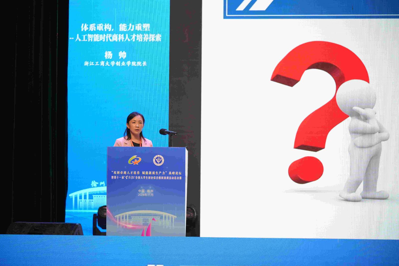 浙江工商大学创业学院院长杨帅以“体系重构,能力重塑——人工智能时代商科人才培养探索”为题,分享了浙江工商大学在人工智能时代商科人才培养方面的探索与实践。