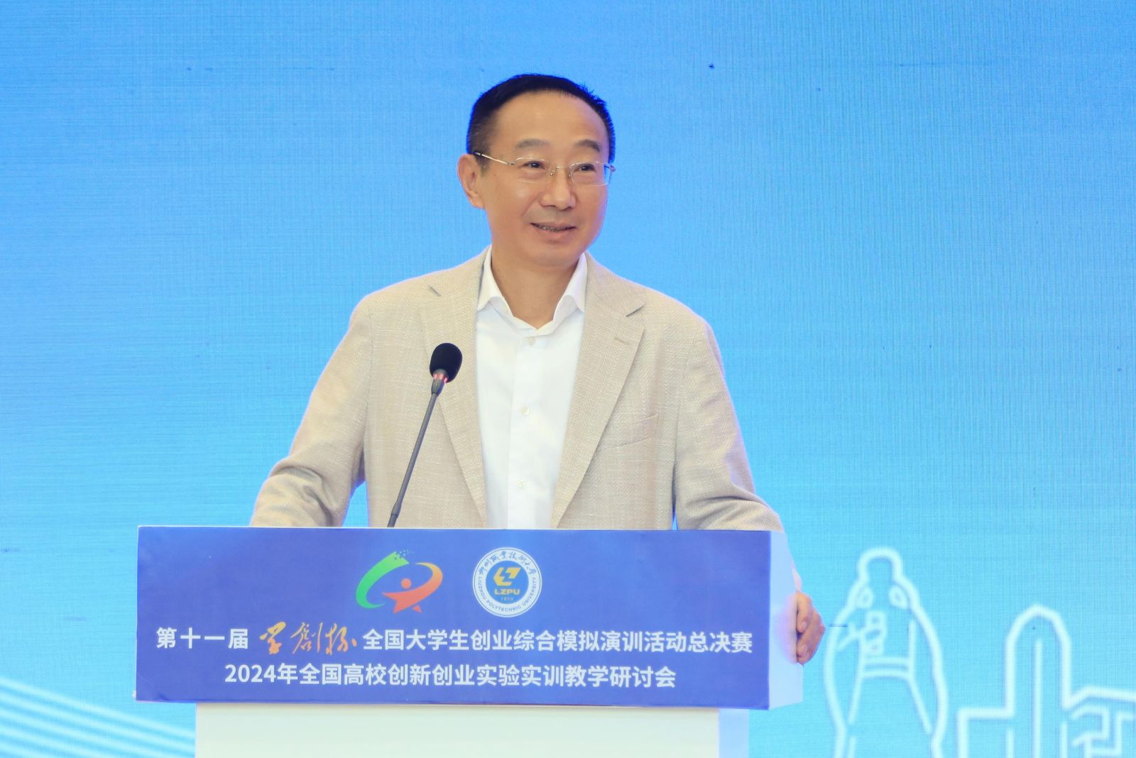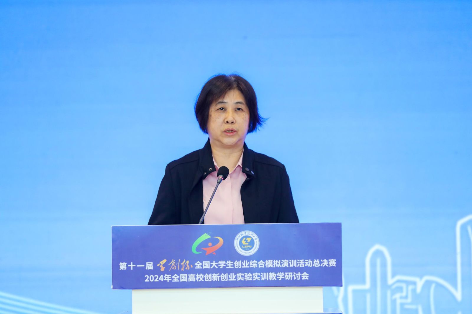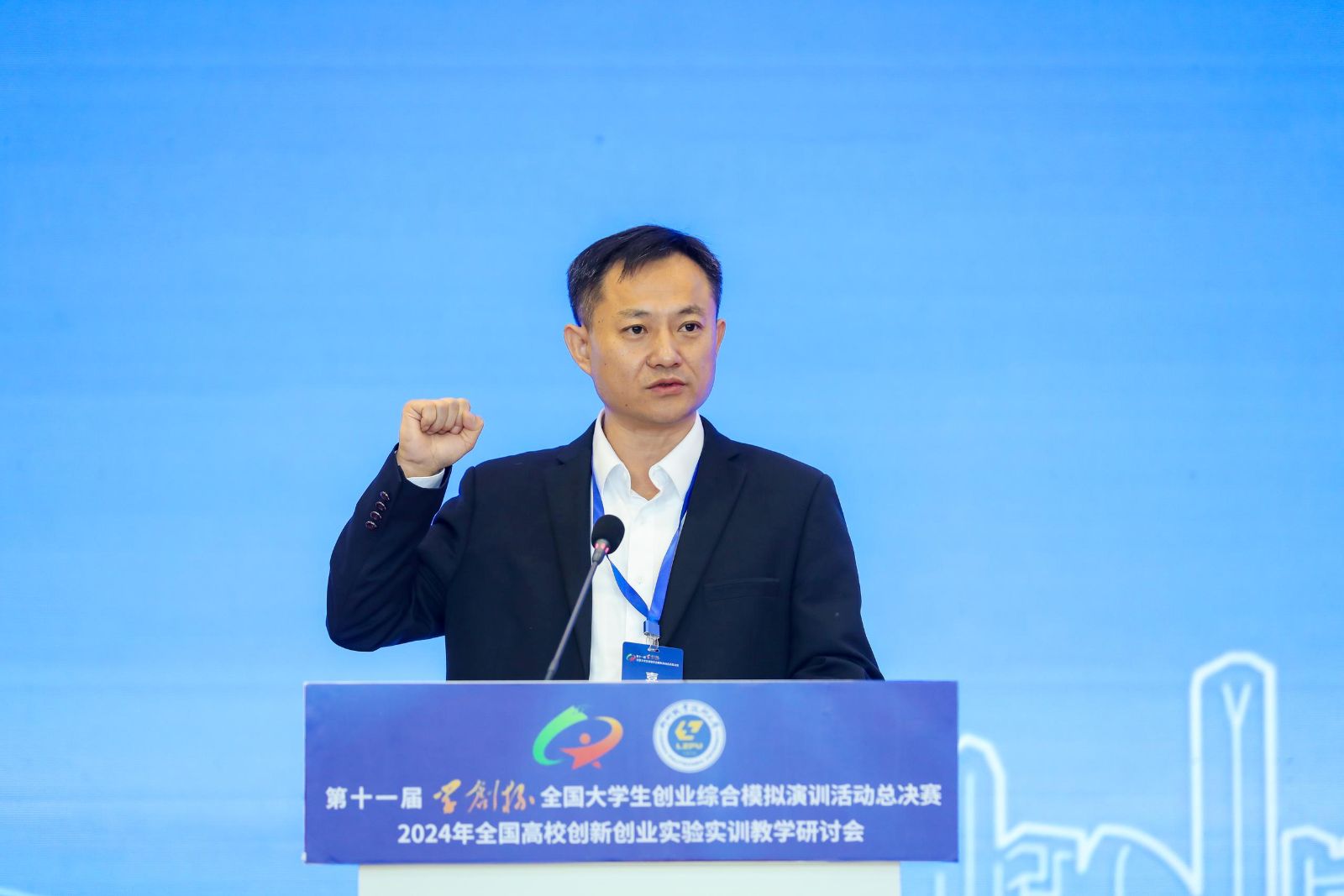 中国陶行知研究会职业教育专委会常务副理事长陆群代表致辞,“学创杯”全国大学生创业综合模拟大赛作为国家级重要赛事,连续多年的成功举办,不断推动着大学生创新创业精神培养,希望该赛事在双创教育领域取得更多突破。