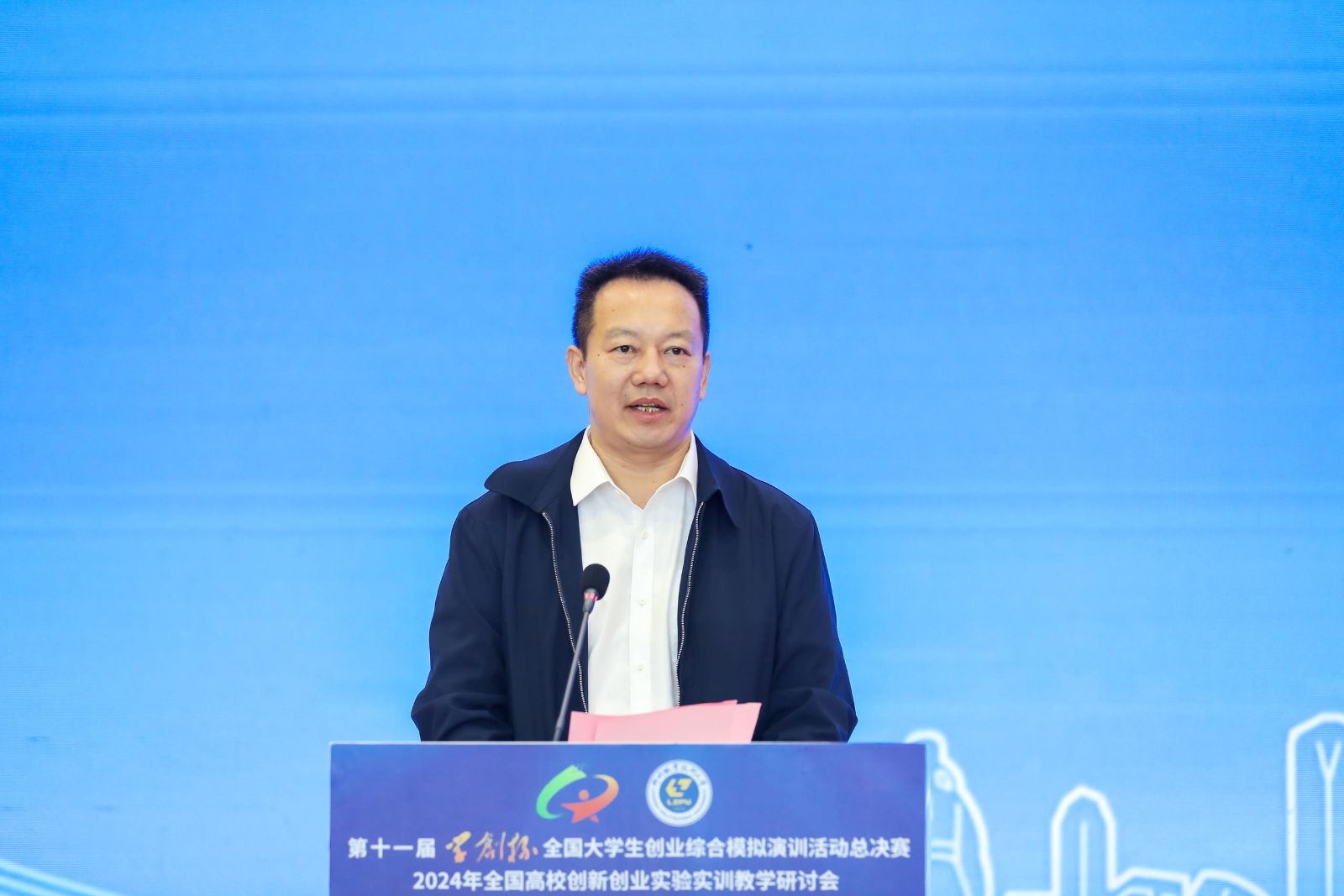 国家级实验教学示范中心联席会副组长任晓阳代表致辞,他回顾了“学创杯”大赛的发展历程,指出每一届大赛都在内容和形式上进行创新和探索,对创新创业教学工作作出了示范引领作用,并期待未来在创新创业教育领域取得更多突破。