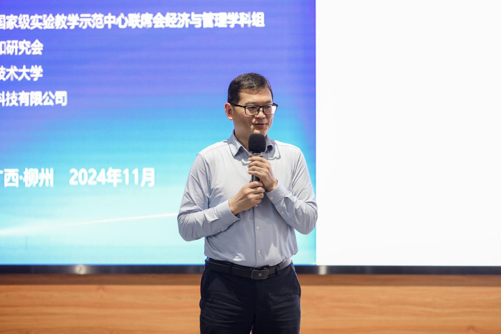 柳州市教育局副局长温剑发表致辞。他表示,创新创业学科竞赛是推进高校就业创业教育工作、开展创新型人才培养的重要手段,对促进高校就业创业教育的蓬勃开展、鼓励高校组建创业模拟实践教育体系具有推动作用。