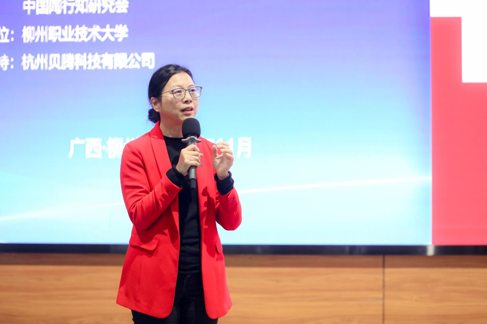 柳州职业技术大学副校长鞠红霞作题为《校企合作需求理论下的高职产教融合实践》的报告。
