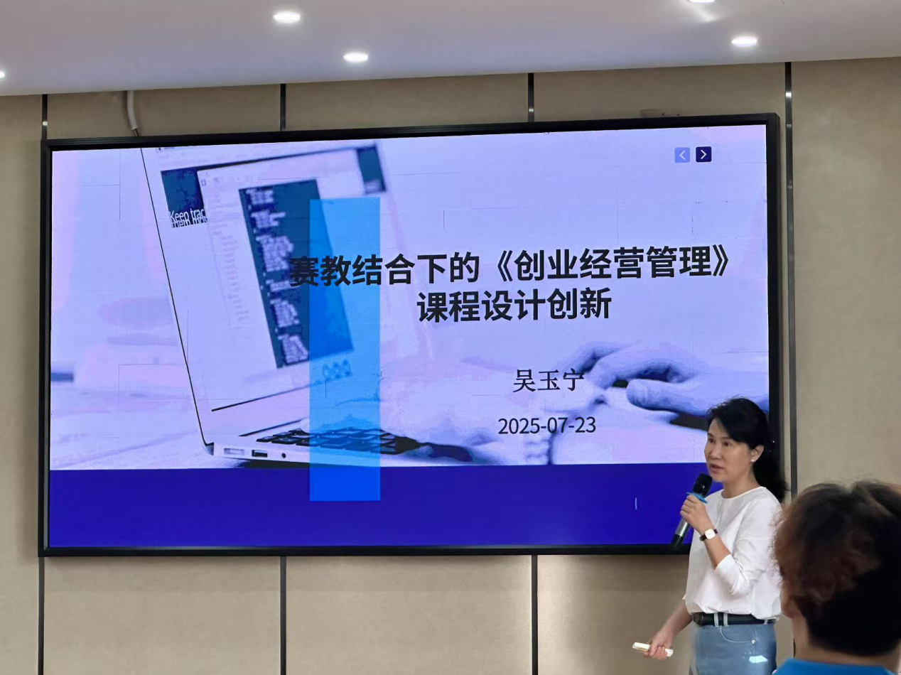 云南大学滇池学院吴玉宁老师作了题为《赛教结合下的创业模拟实训课程设计与实施》的报告。吴老师以《创业之星》平台为例,从创业类课程教学挑战、《创业经营管理》课程概述、基于“建构主义”的设计思路、“R-V”教学模型构建、教学场景设计、PEP拼图分组教学策略、“多阶段+多元化”考评机制、教学创新成效等多个角度进行了教学设计以及创业模拟大赛指导经验分享。